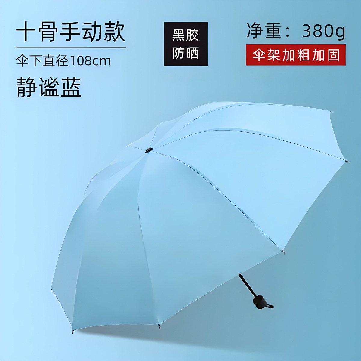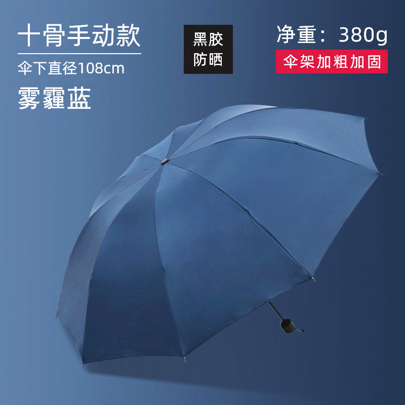 대형 비 및 비 이중 사용 남성과 여성의 접이식 수동 우산 비즈니스 블랙 접착제 태양 보호 자외선 차단 태양 우산