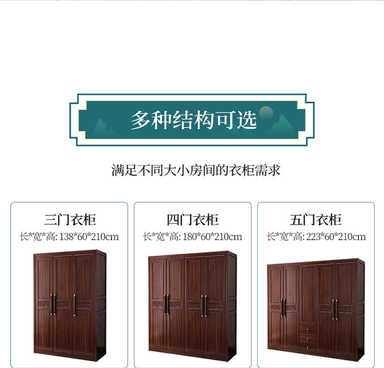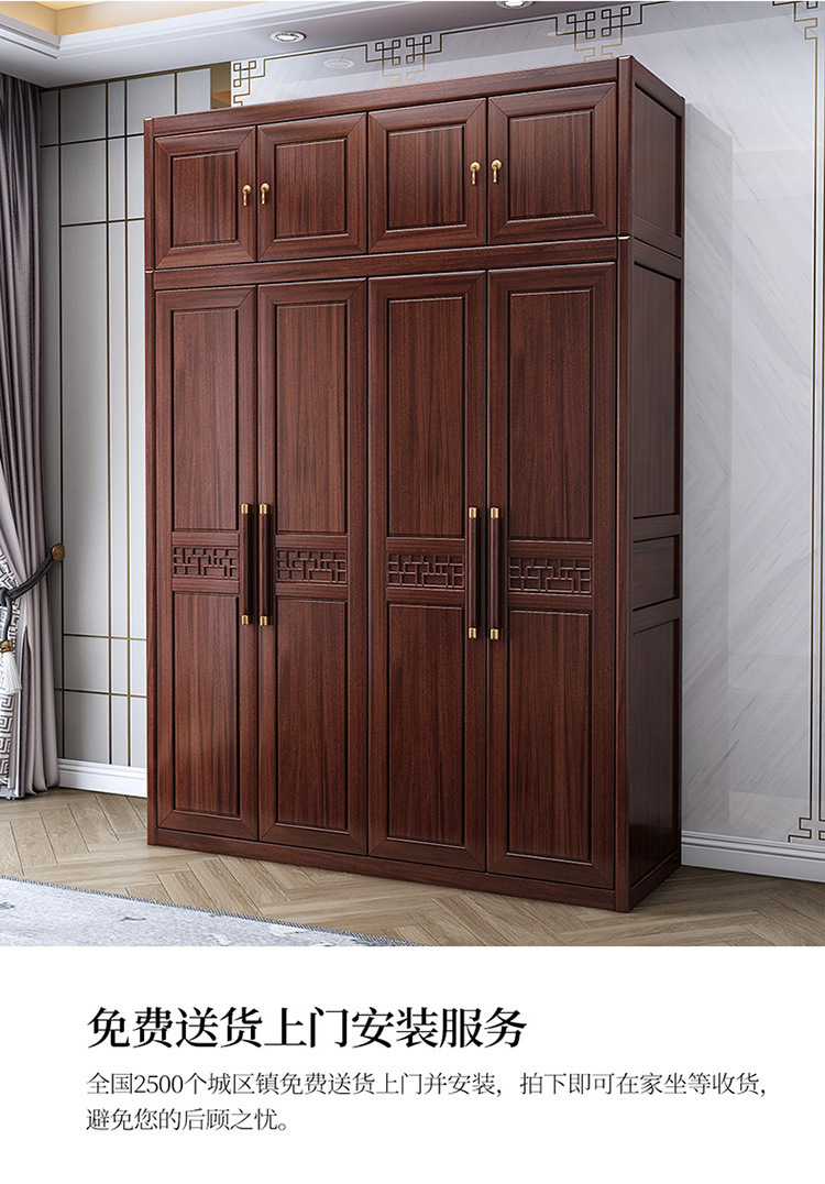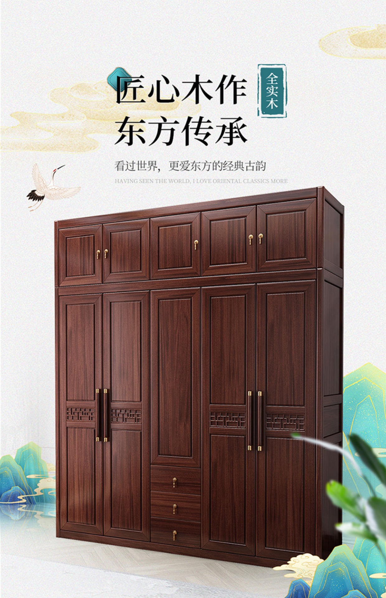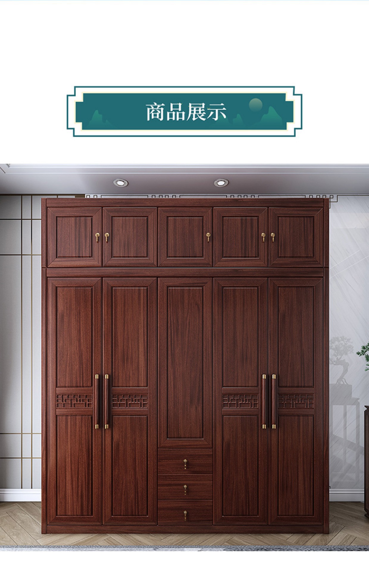 새로운 중국 스타일의 우진 나무 옷장 단단한 가구 침실 사물함 하이 엔드 크고 작은 아파트 보관 옷장스토어 가기