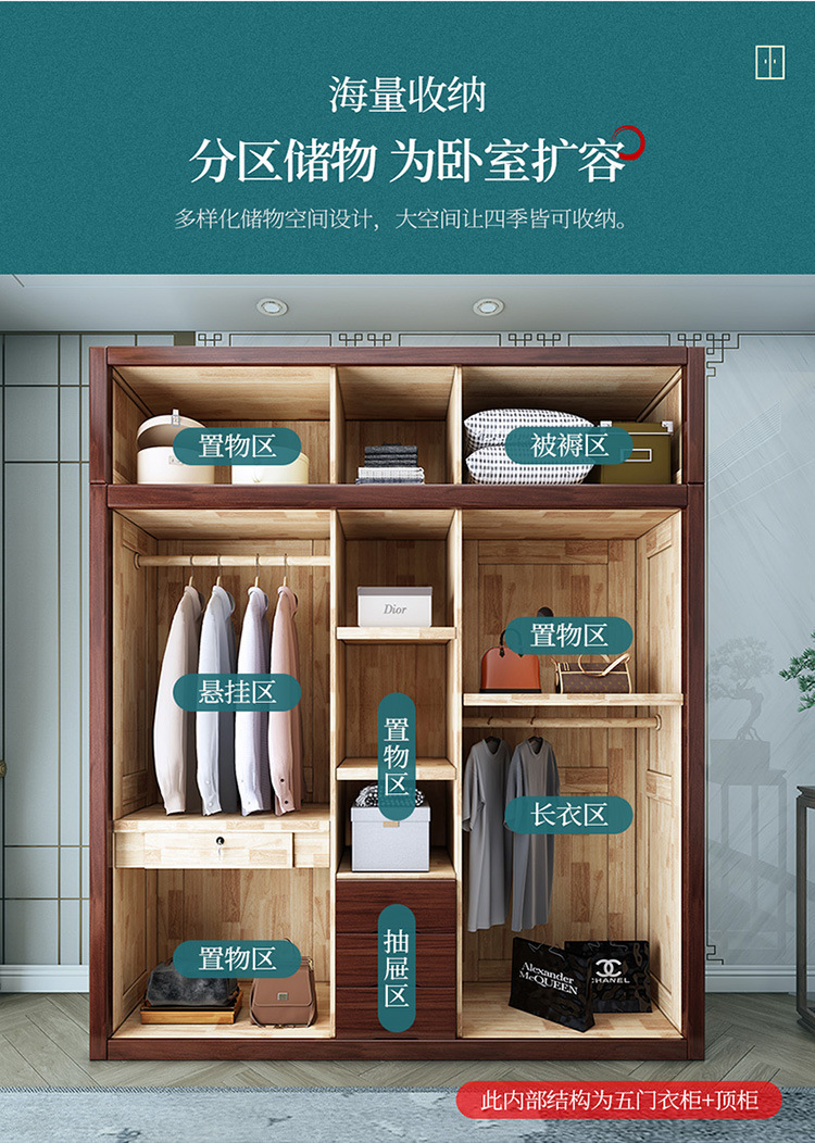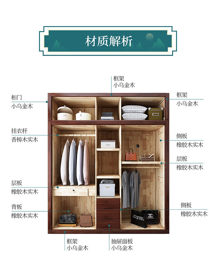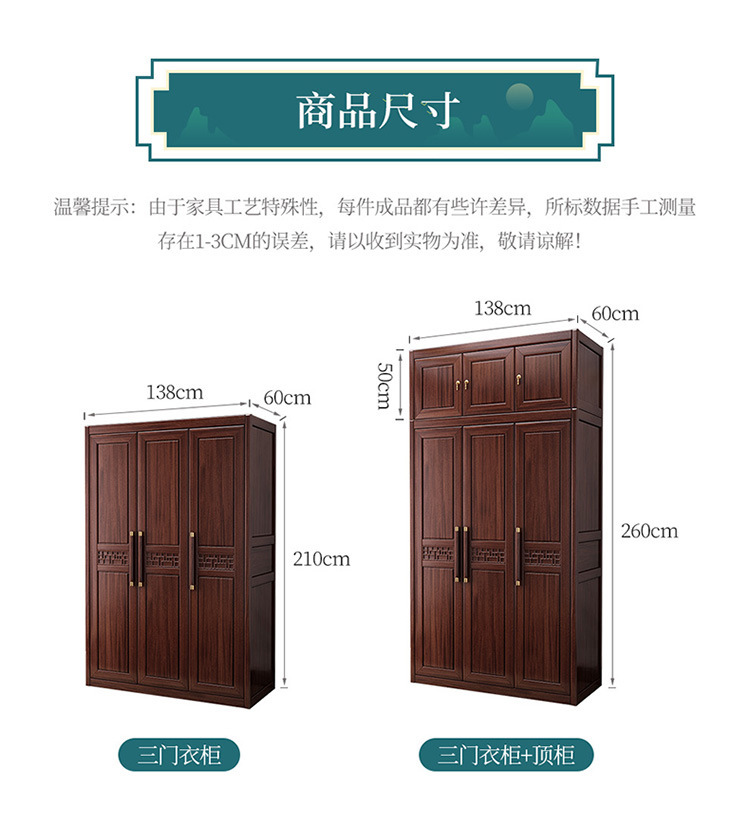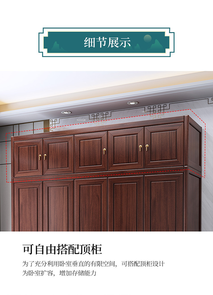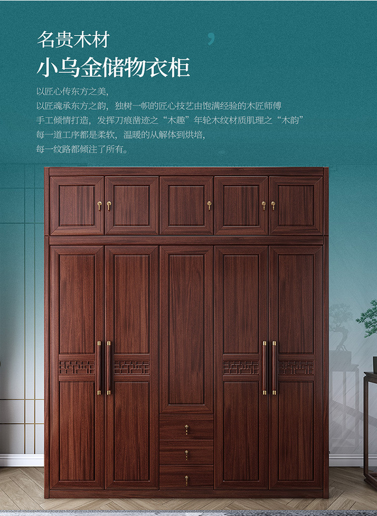 새로운 중국 스타일의 우진 나무 옷장 단단한 가구 침실 사물함 하이 엔드 크고 작은 아파트 보관 옷장스토어 가기