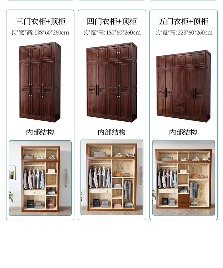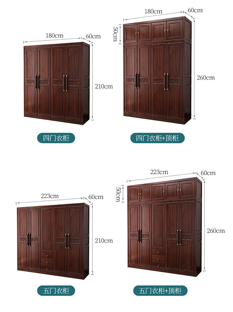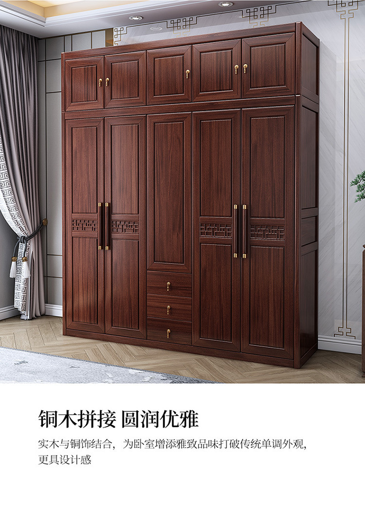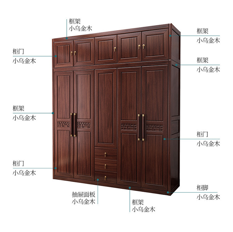 새로운 중국 스타일의 우진 나무 옷장 단단한 가구 침실 사물함 하이 엔드 크고 작은 아파트 보관 옷장