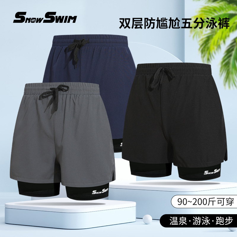 남자 더블 레이어 수영 트렁크 복서 성인 빠른 건조 방황 수영 트렁크 비치 바지 온천 수영 장비 세트스토어 가기