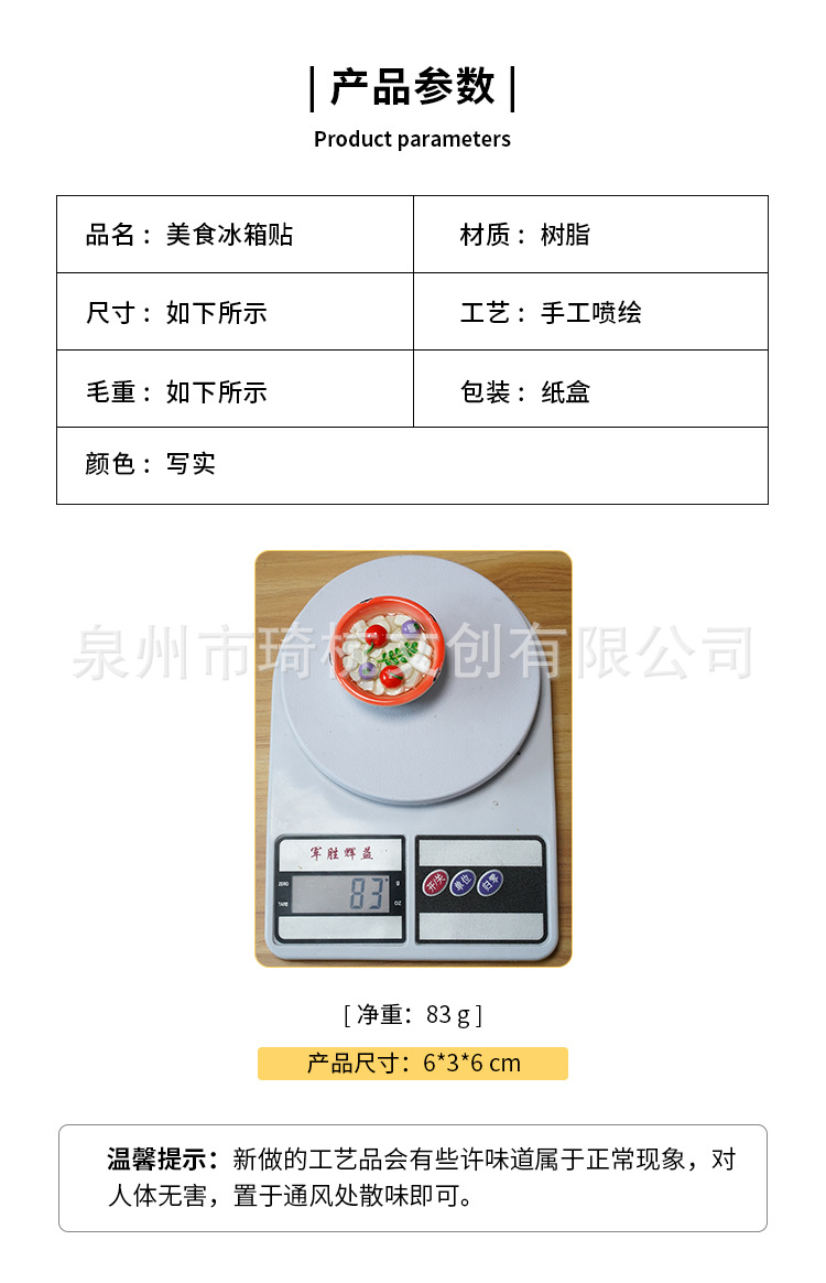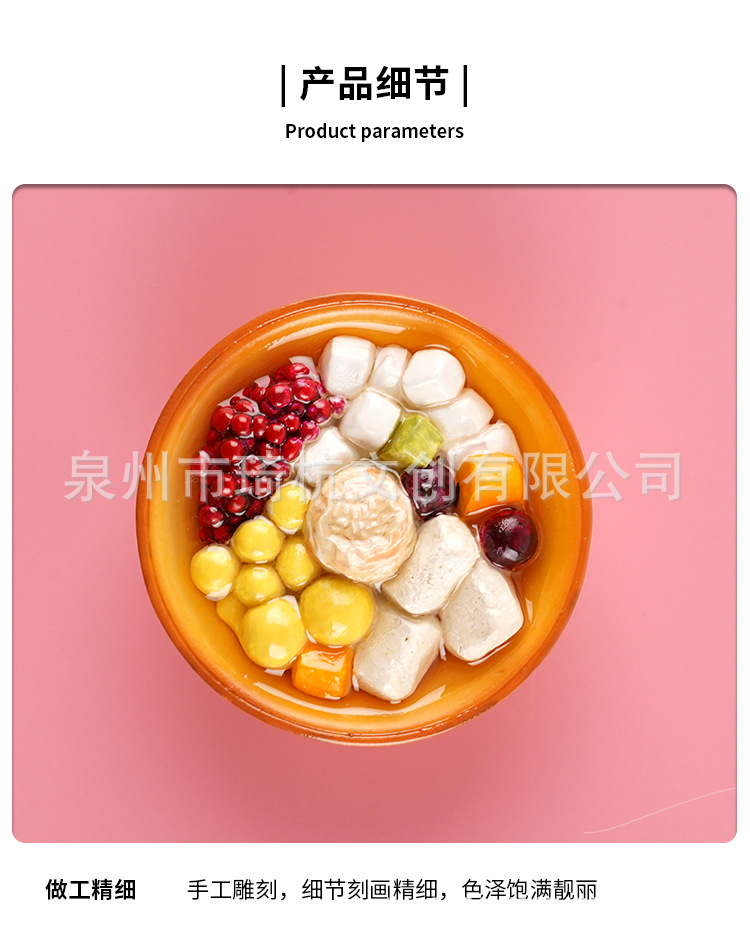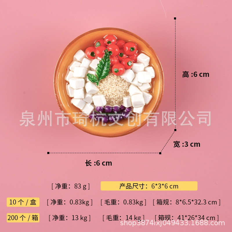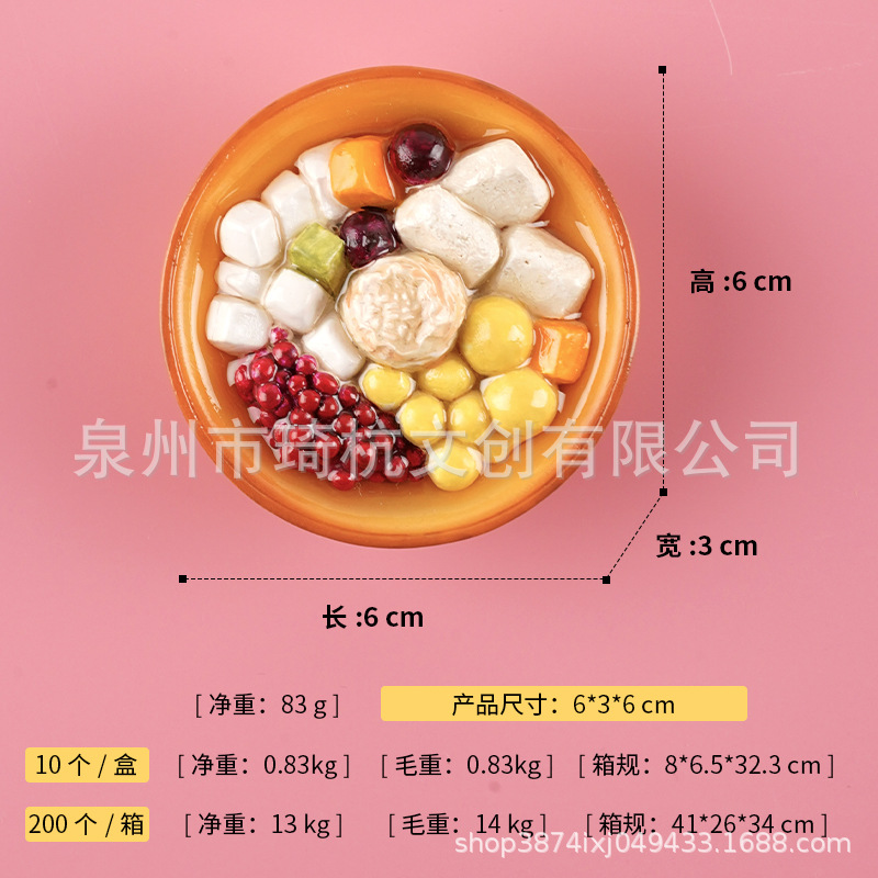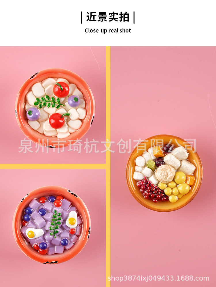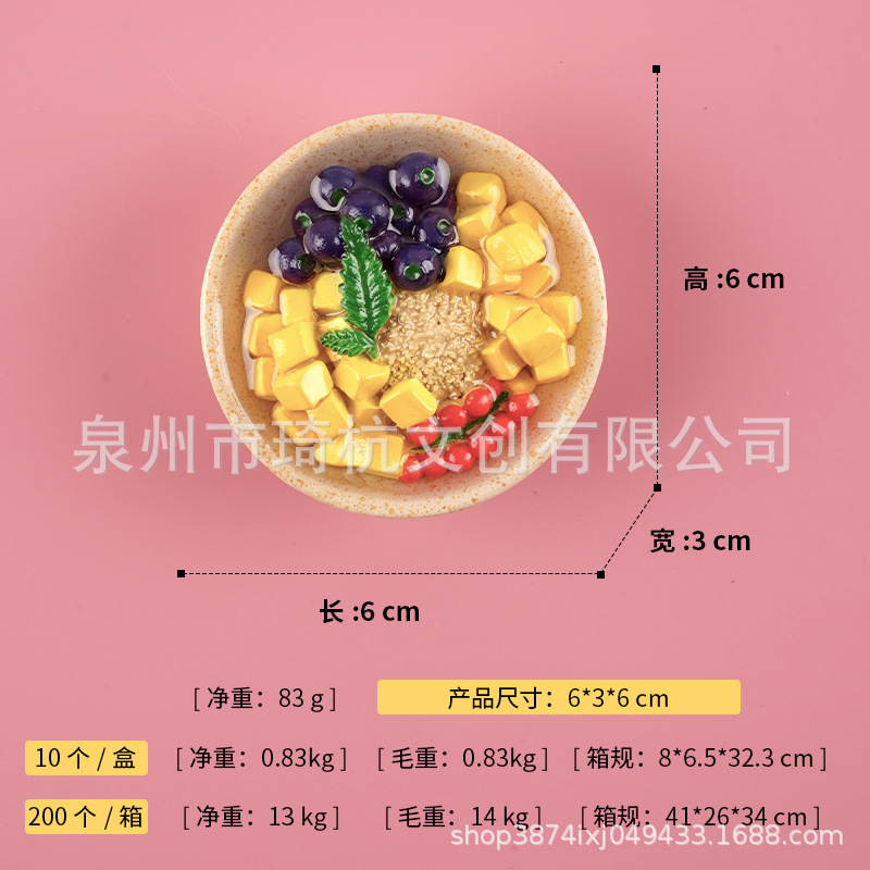 창조적 인 블라인드 박스 음식 냉장고 스티커 장식 과일 붉은 콩 타로 라운드 디저트 설탕 물 럭셔리 큰 카드 음식과 놀이 마그네틱 스티커