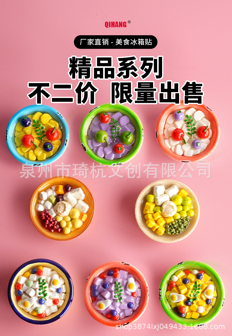 창조적 인 블라인드 박스 음식 냉장고 스티커 장식 과일 붉은 콩 타로 라운드 디저트 설탕 물 럭셔리 큰 카드 음식과 놀이 마그네틱 스티커스토어 가기