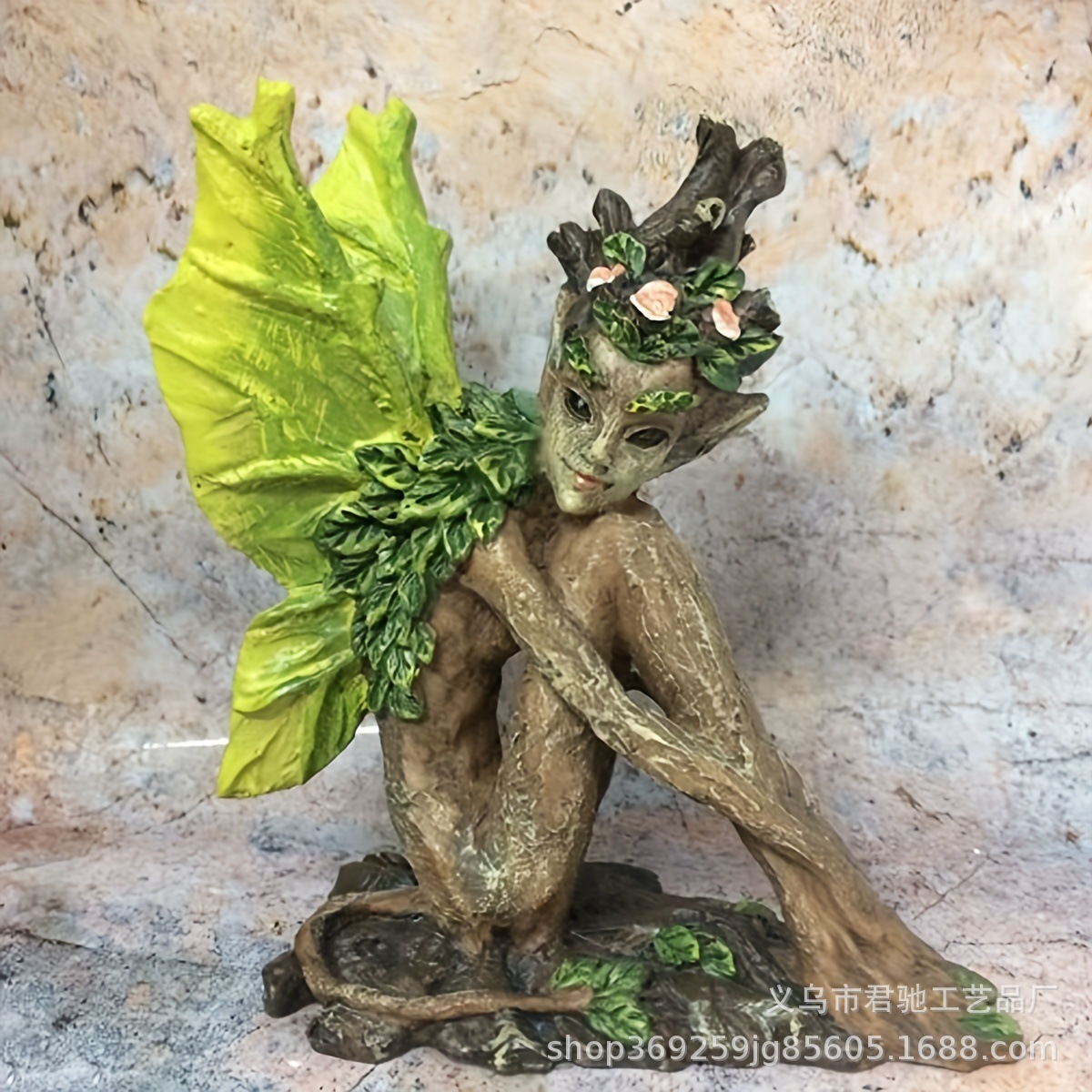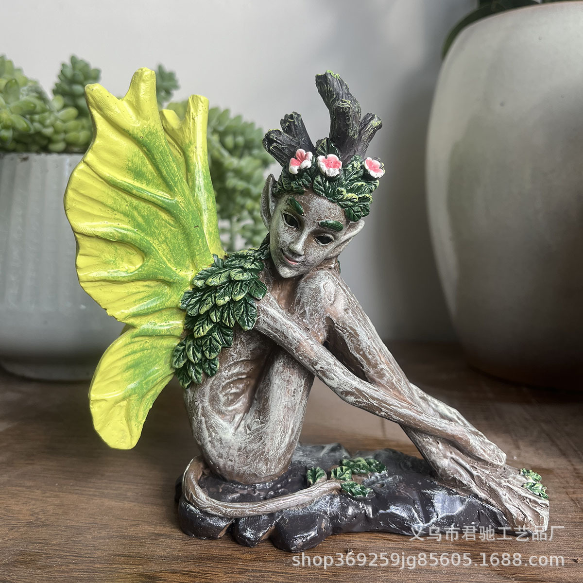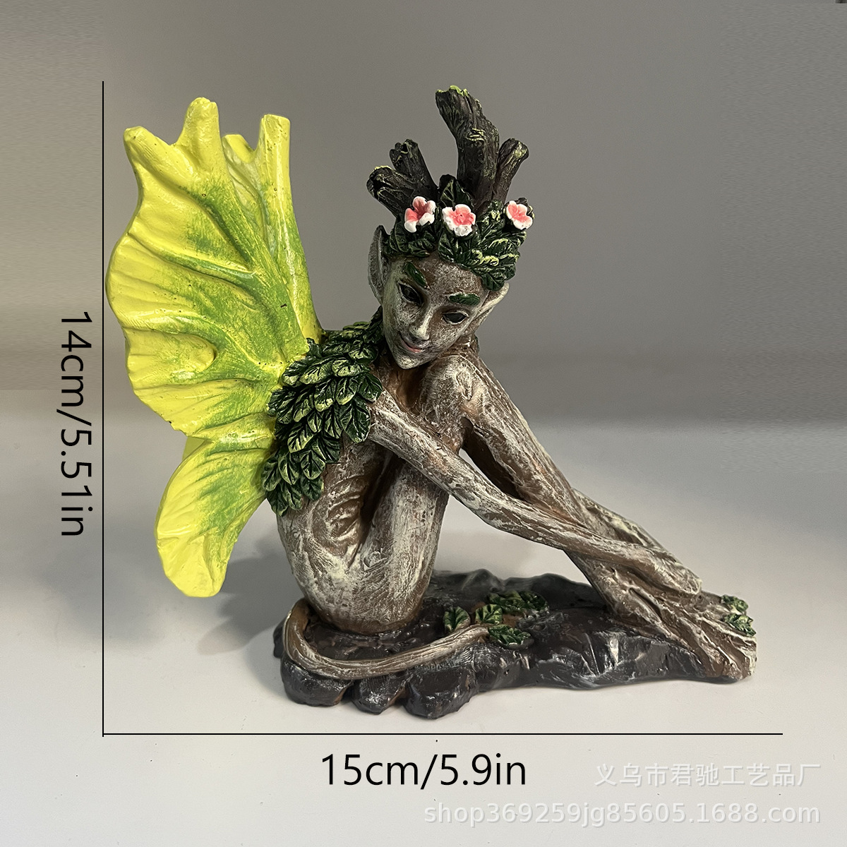 국경 간 가족 동상 장식 안뜰 천사 장식 엘프 날개 요정 숲 여신 창턱 발코니 장식