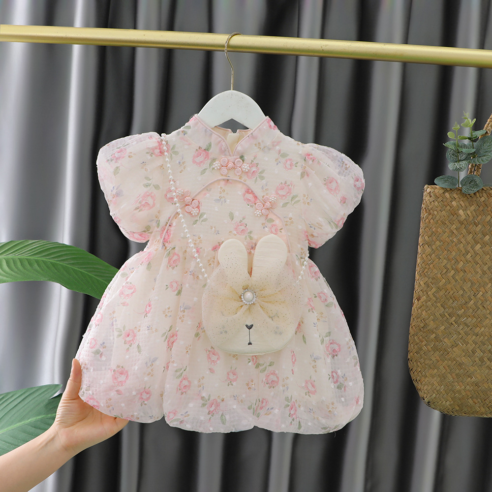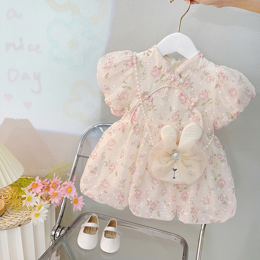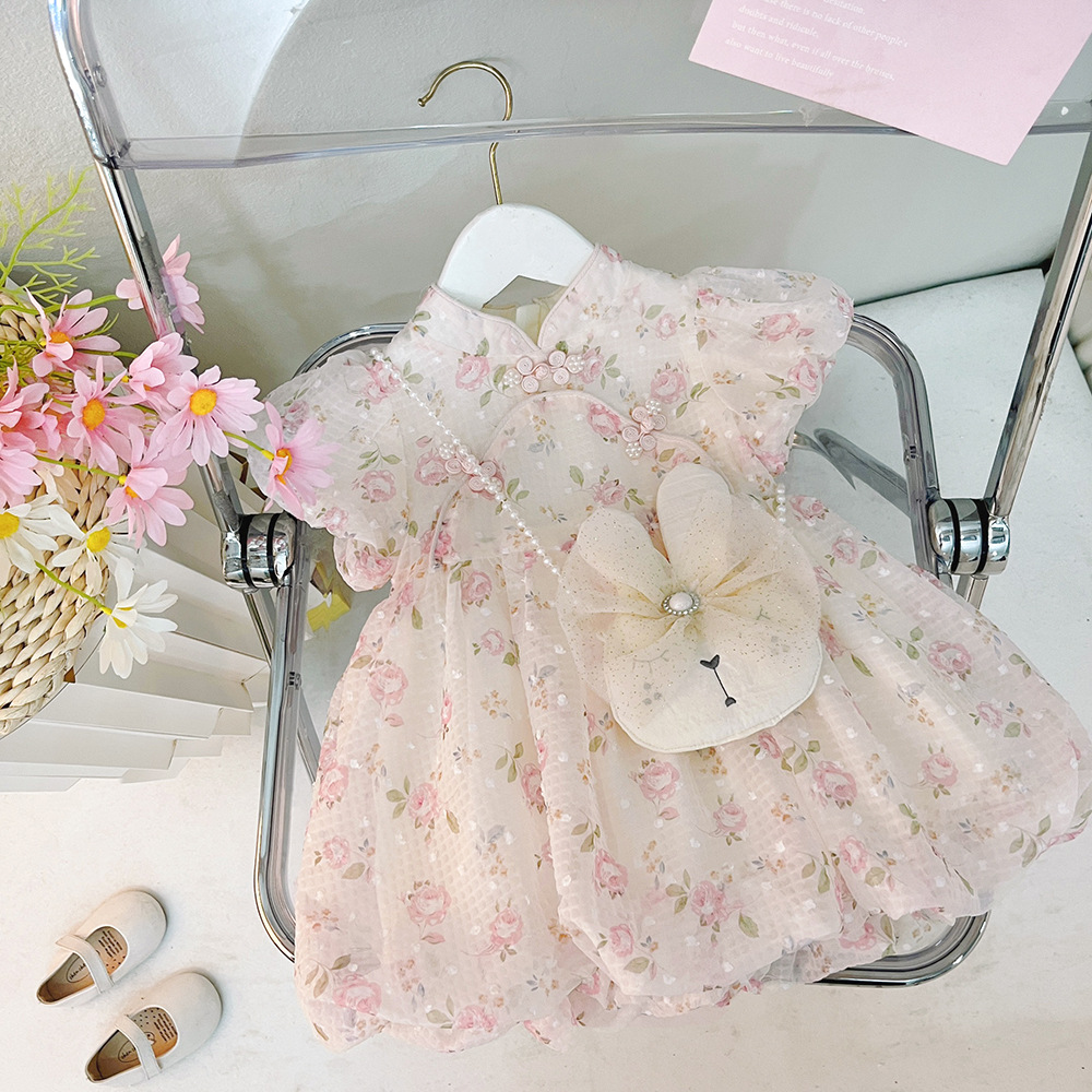 공주 드레스 여아용 거즈 드레스 여름 2025 신상 유행 어린이 치파오 원피스 두 살 아기 여름옷