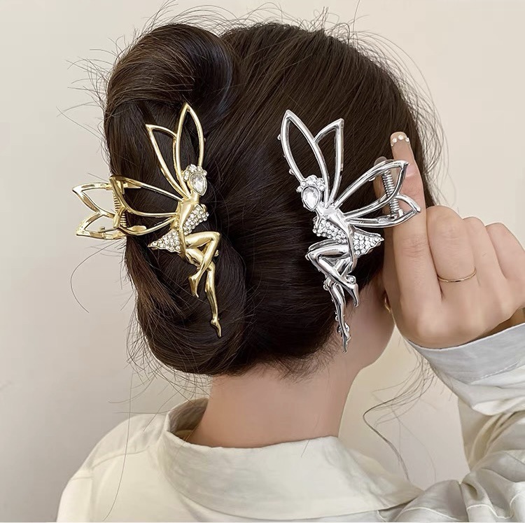 엘프 소녀 클립 대형 우아한 고급 금속 머리핀 헤드 액세서리 틈새 디자인 updo 상어 클립 여성스토어 가기