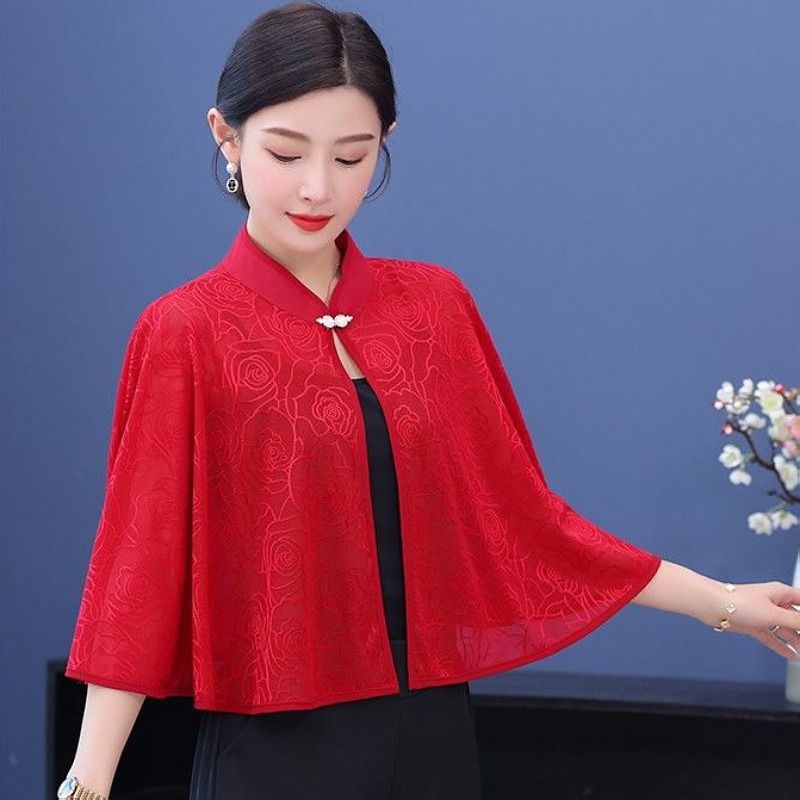 같은 스타일의 여성 목도리 장미 우아한 버클 카디건 cheongsam 겉옷 아이스 실크 선 스크린 얇은 느슨한 슬리밍스토어 가기