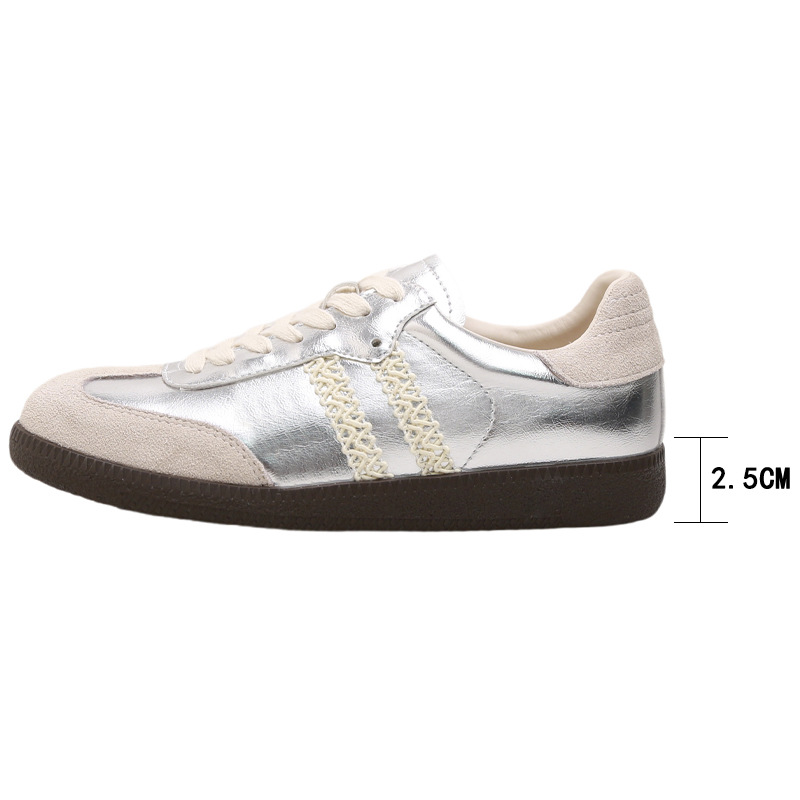 Su Yinyin 스타일 레트로 레이스 진짜 가죽 실버 독일 훈련 신발 라운드 토 레이스 업 여성 캐주얼 운동화