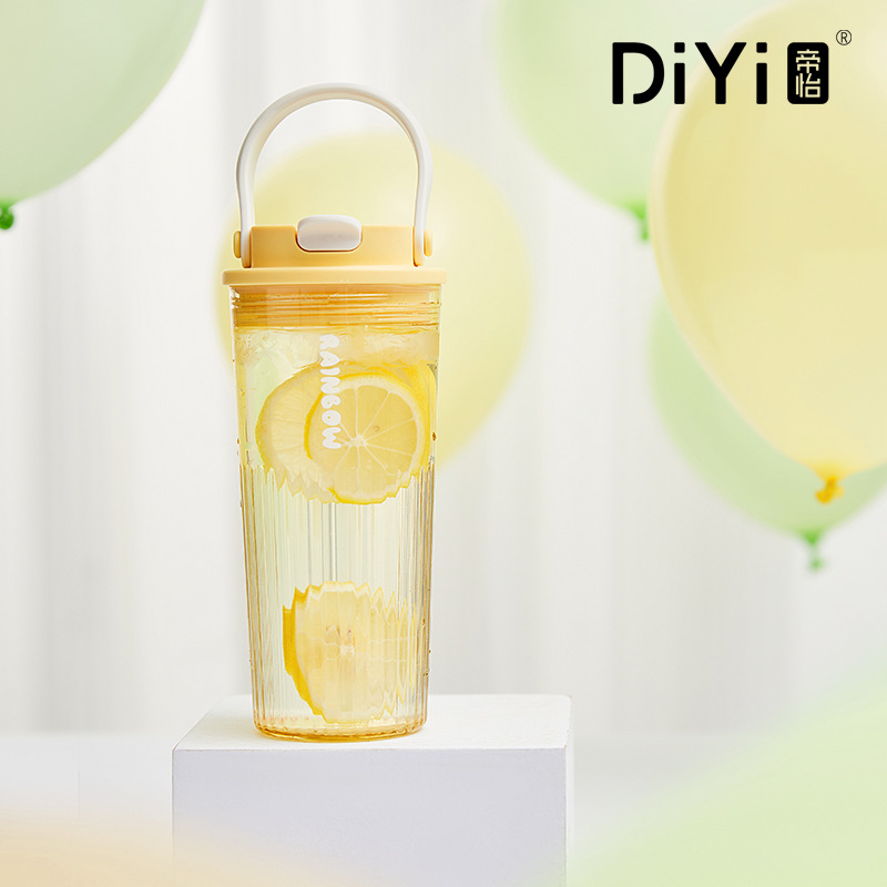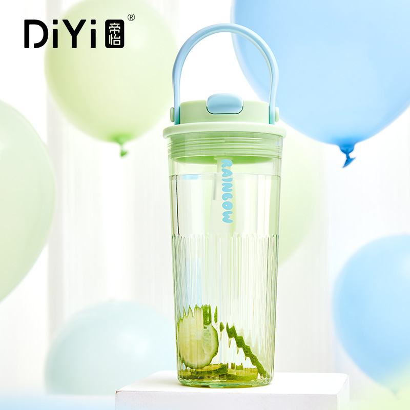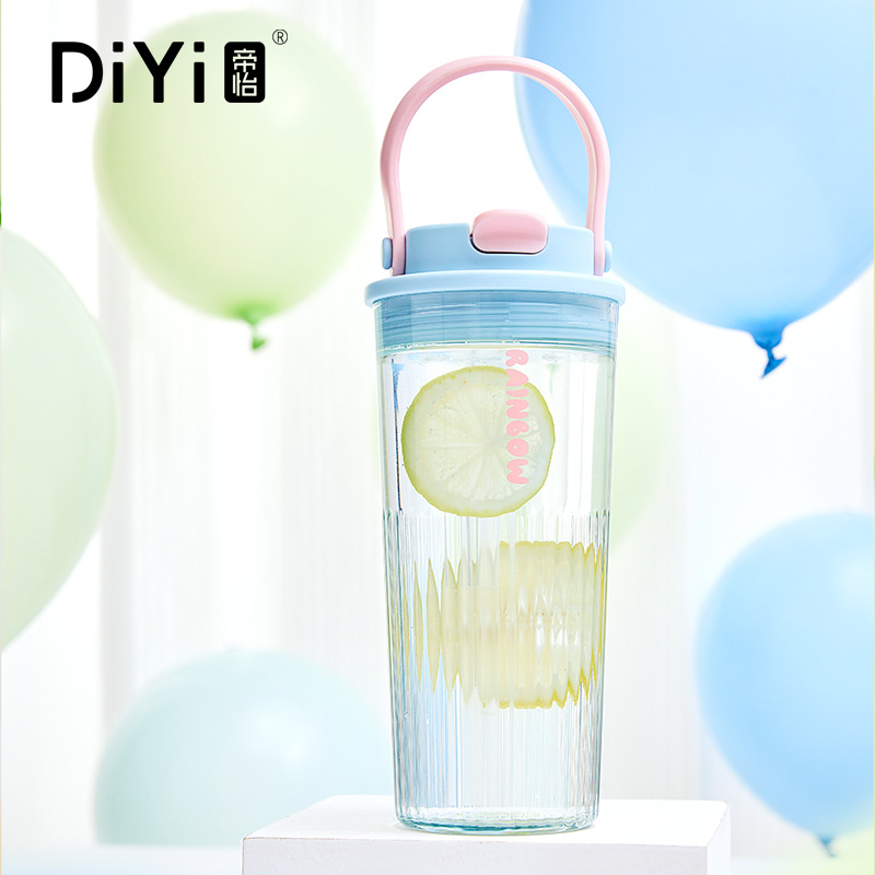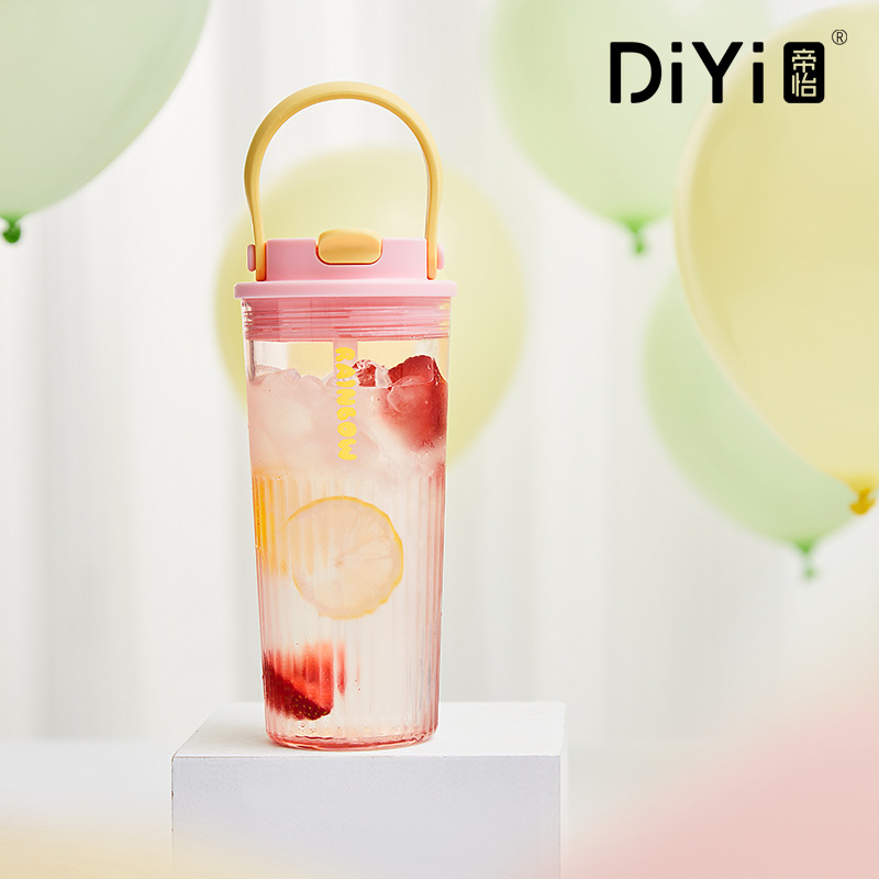 Diyi 높은 모양의 휴대용 물 컵 학생 플라스틱 컵 핸들 직접 마시는 컵 여성 여름 배치