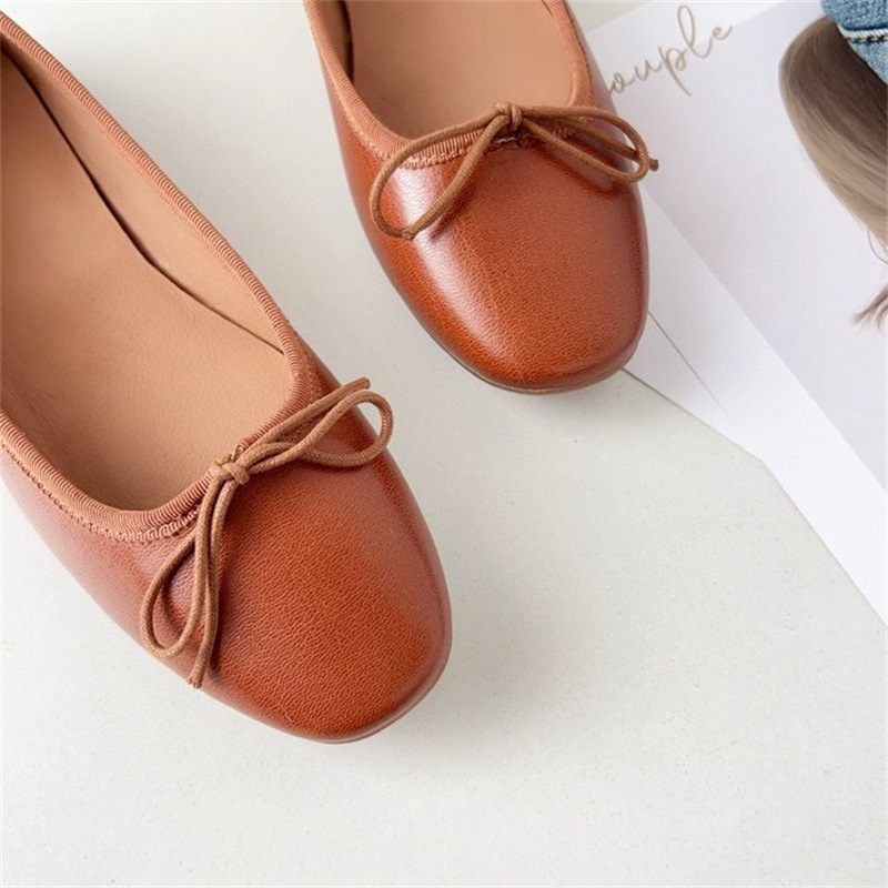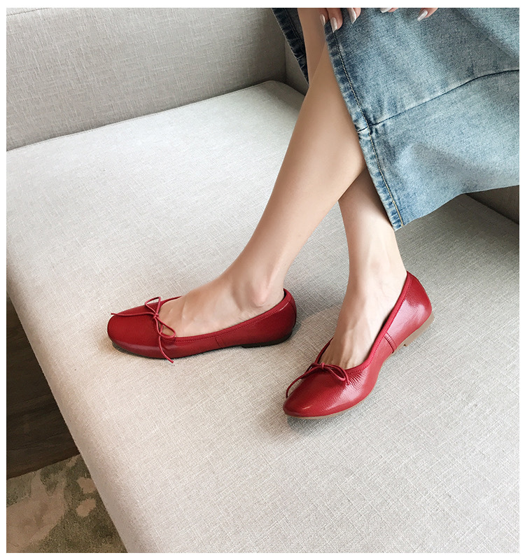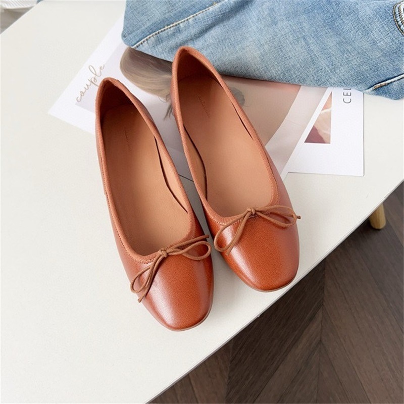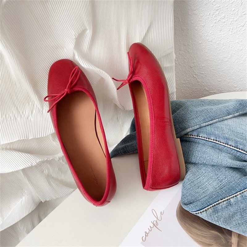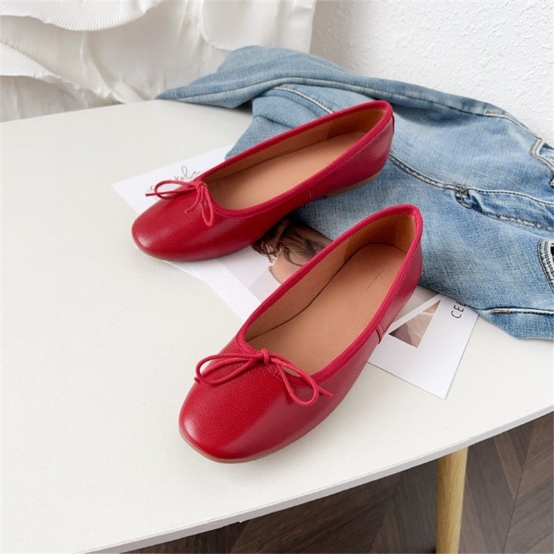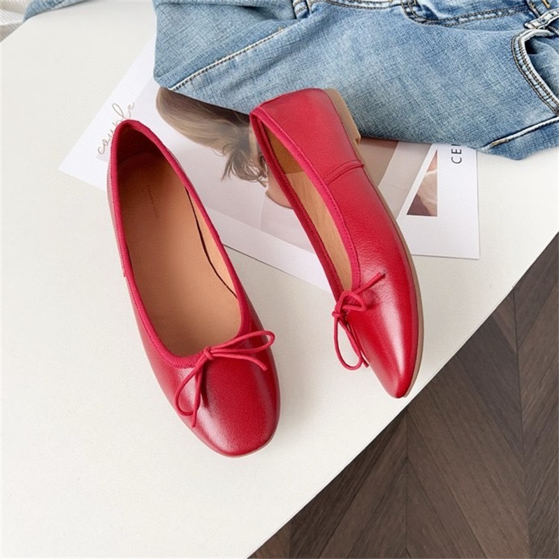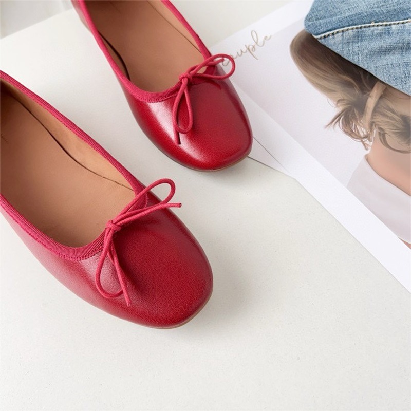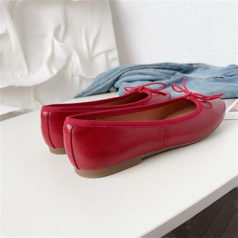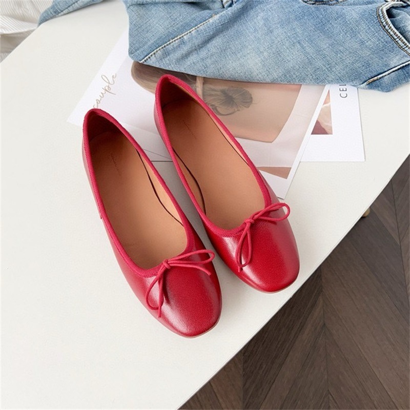 2024 새로운 클래식 수제 발레 신발 신발 신발 신발 여성용 작은 빨간 신발 둥근 발가락 활 단층 신발