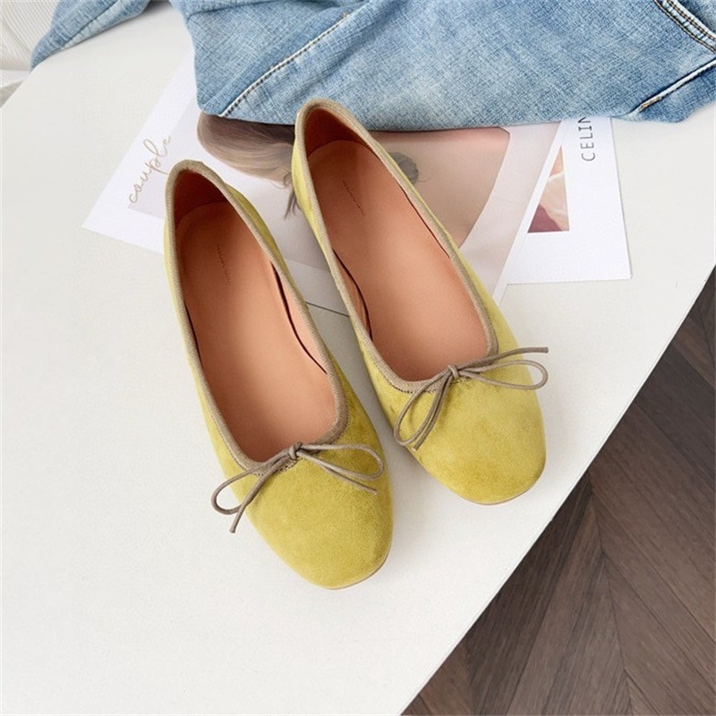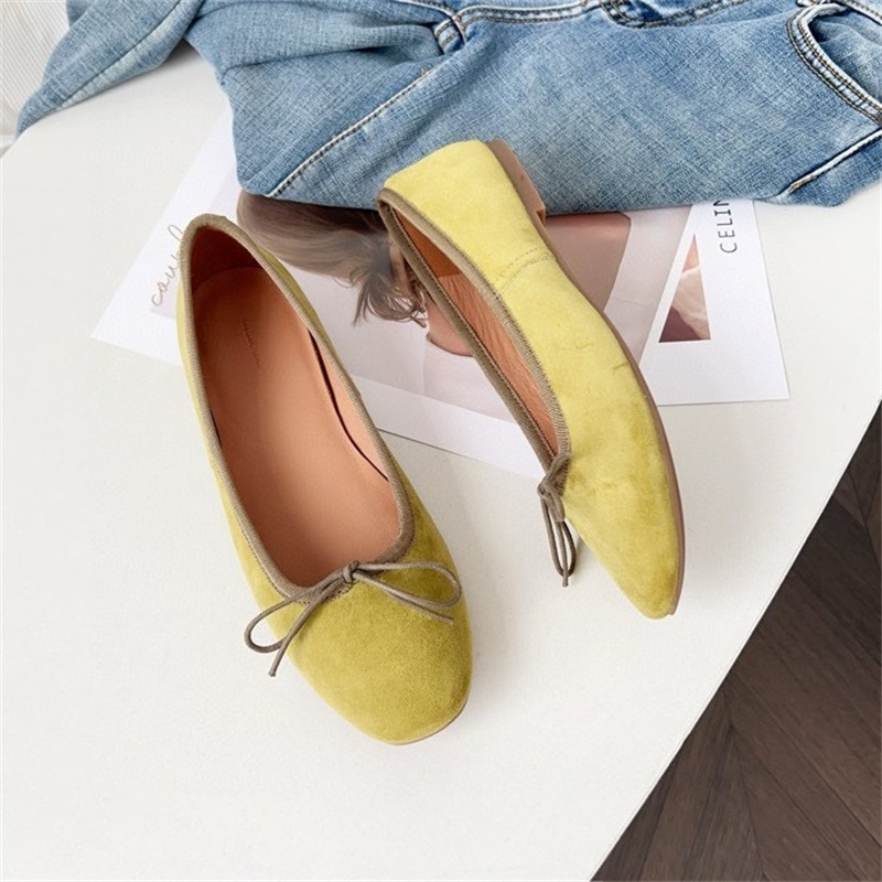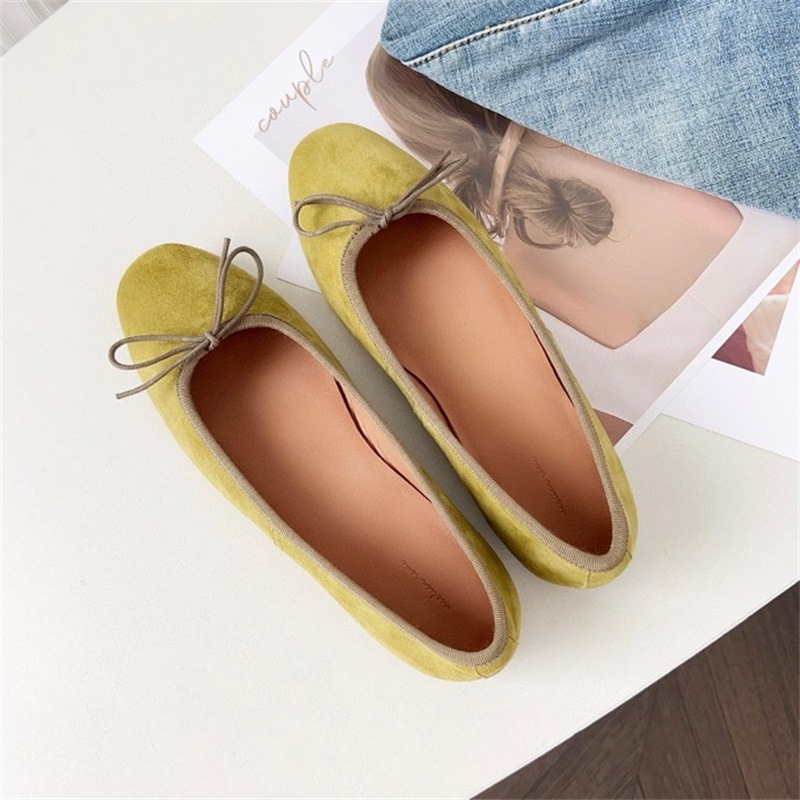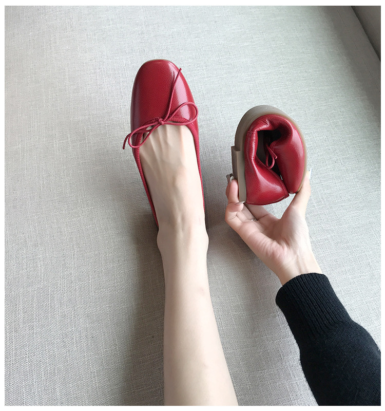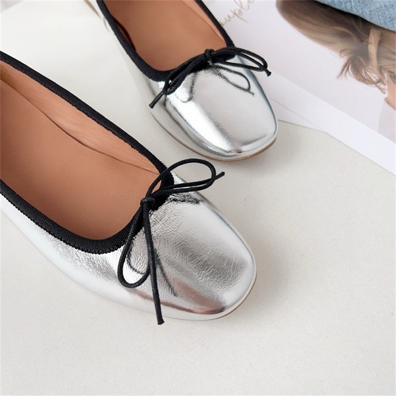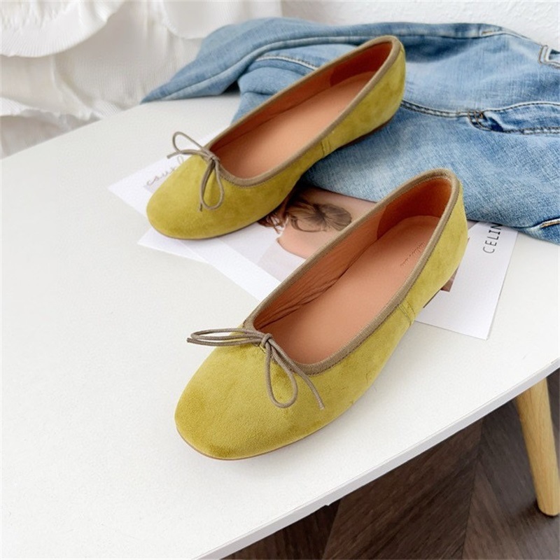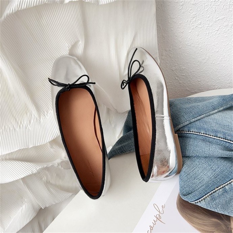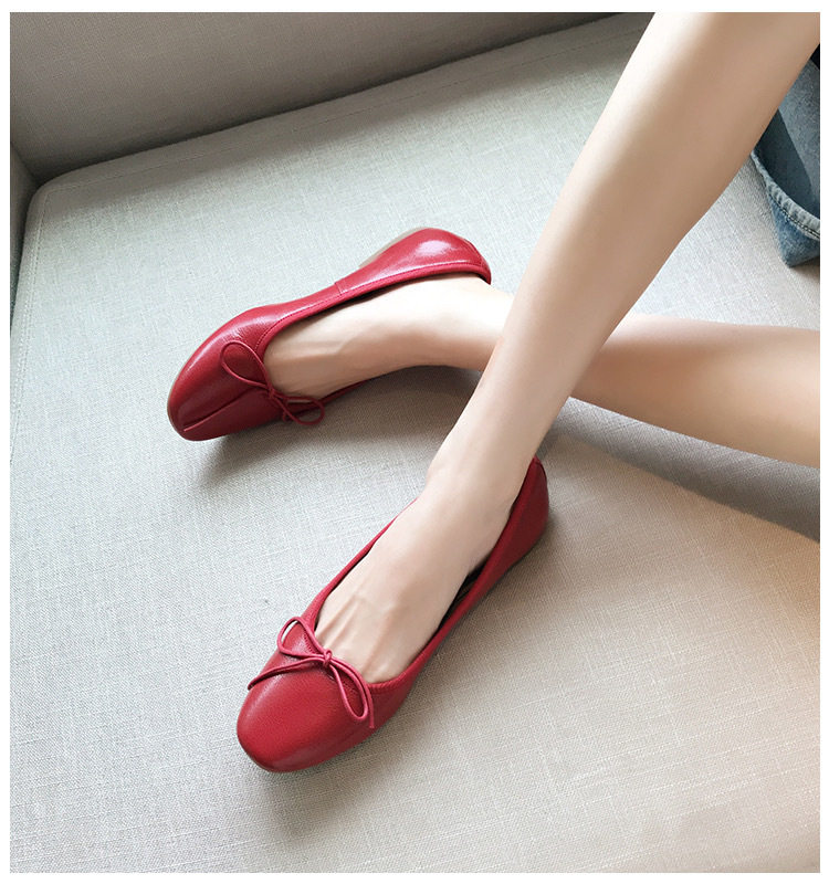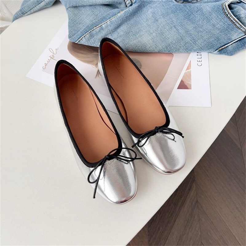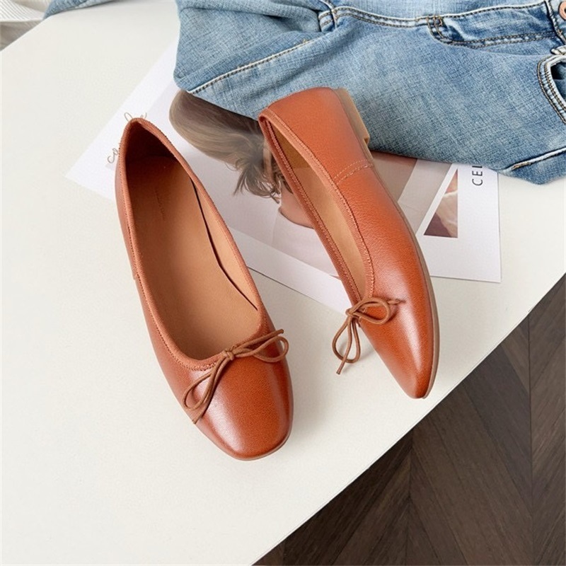 2024 새로운 클래식 수제 발레 신발 신발 신발 신발 여성용 작은 빨간 신발 둥근 발가락 활 단층 신발