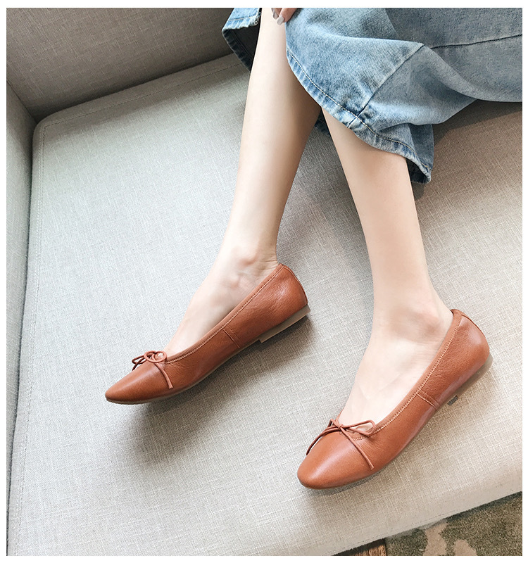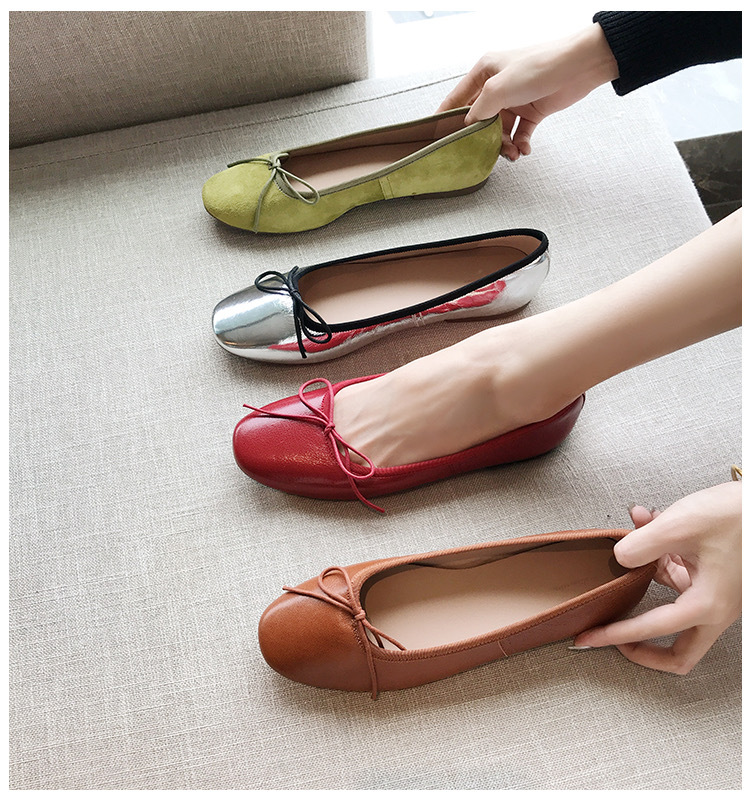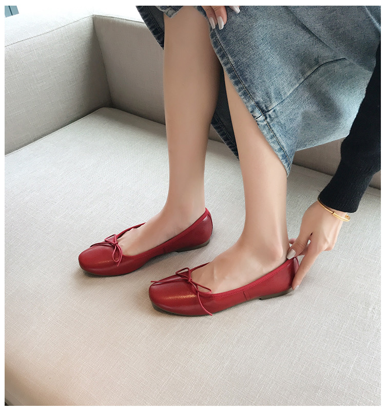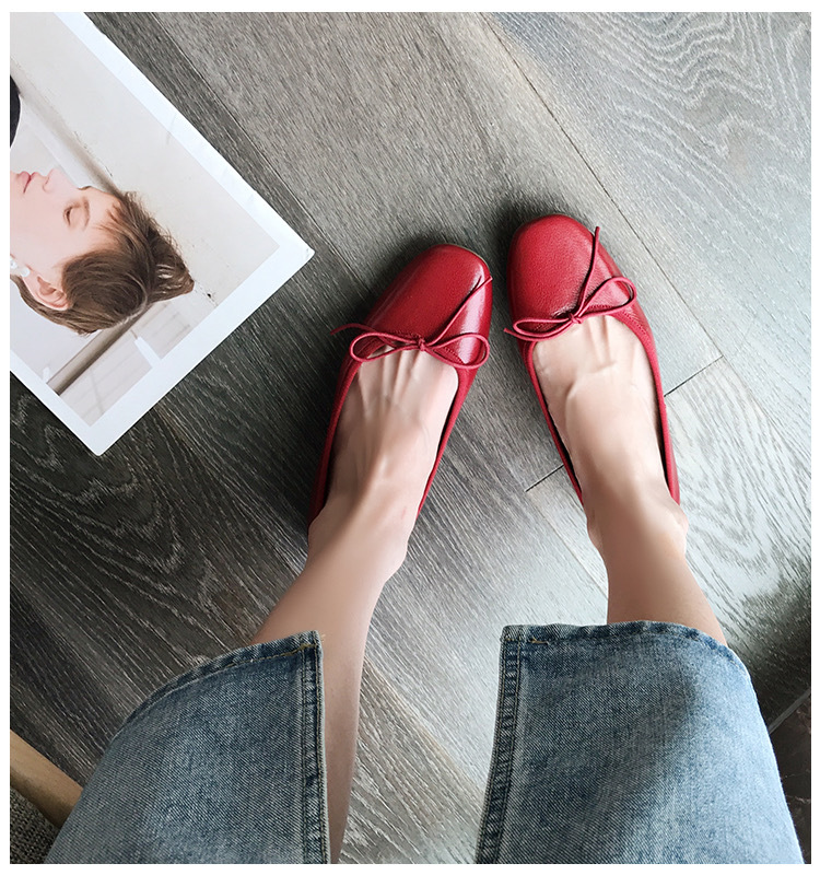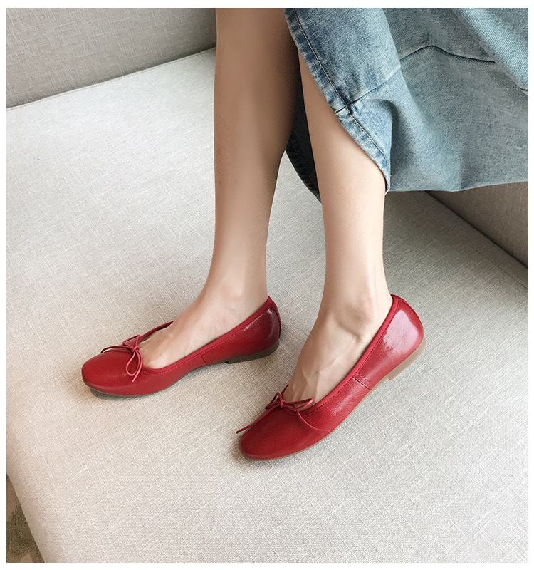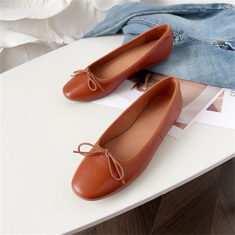 2024 새로운 클래식 수제 발레 신발 신발 신발 신발 여성용 작은 빨간 신발 둥근 발가락 활 단층 신발스토어 가기