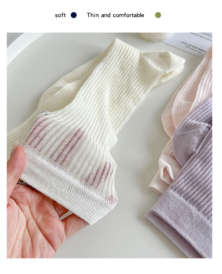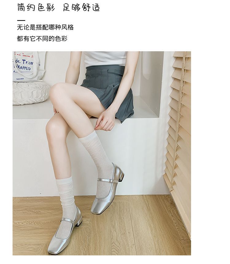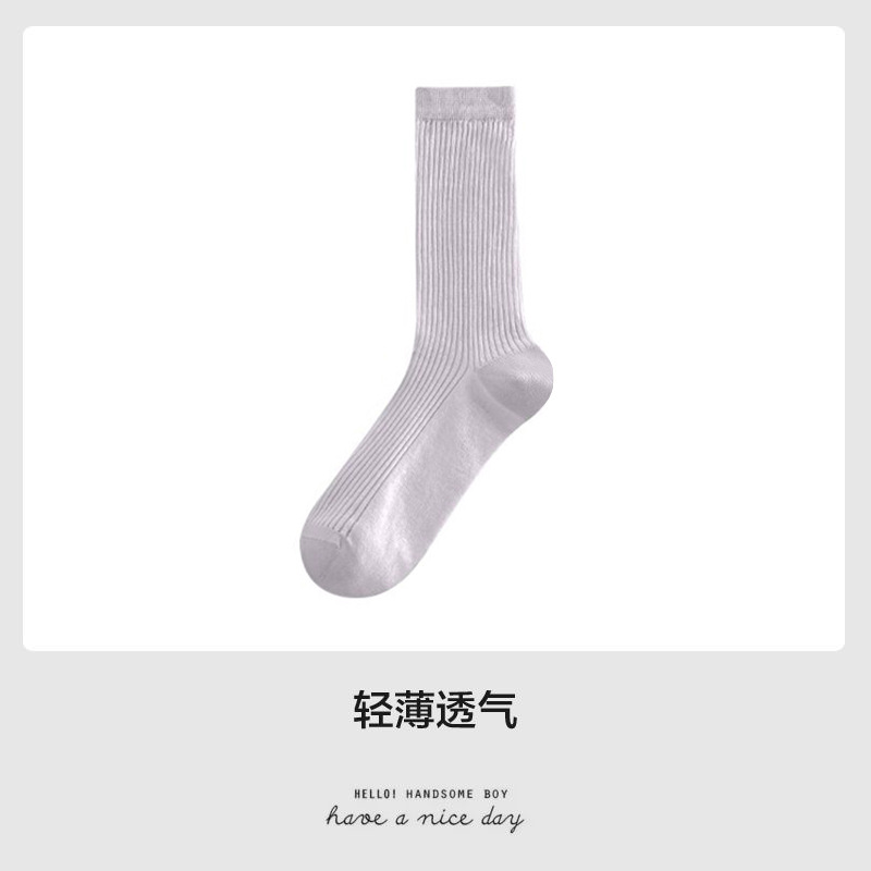 얇은 양말 여성 중반 종아리 봄 여름 학생 여성 양말 다목적 통기성 수직 패턴 달콤한 소녀 여름 여성 양말 더미 양말 Zhuji스토어 가기
