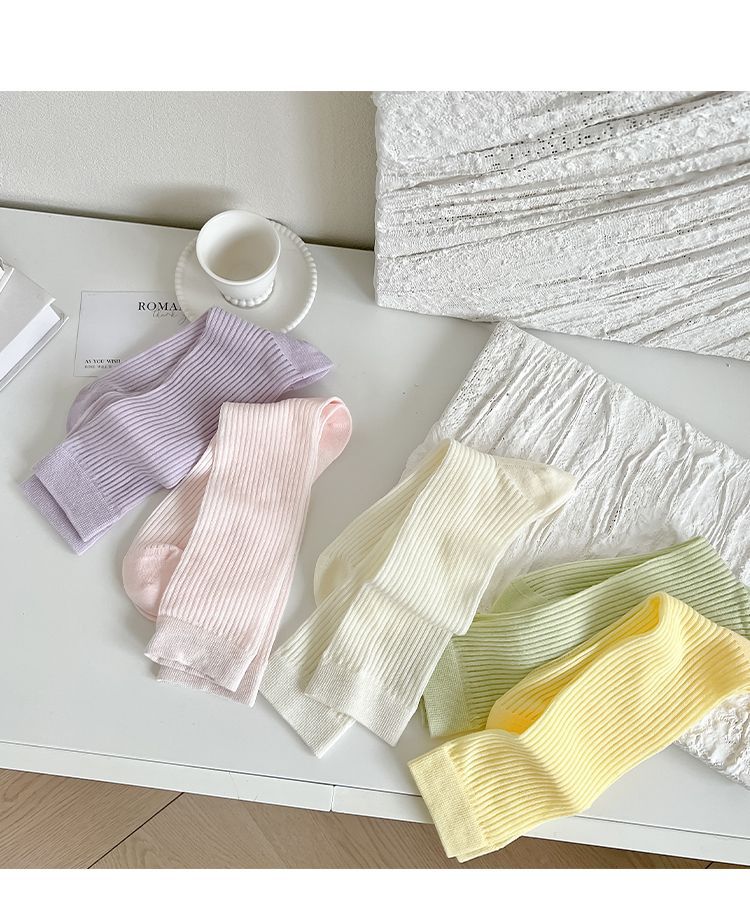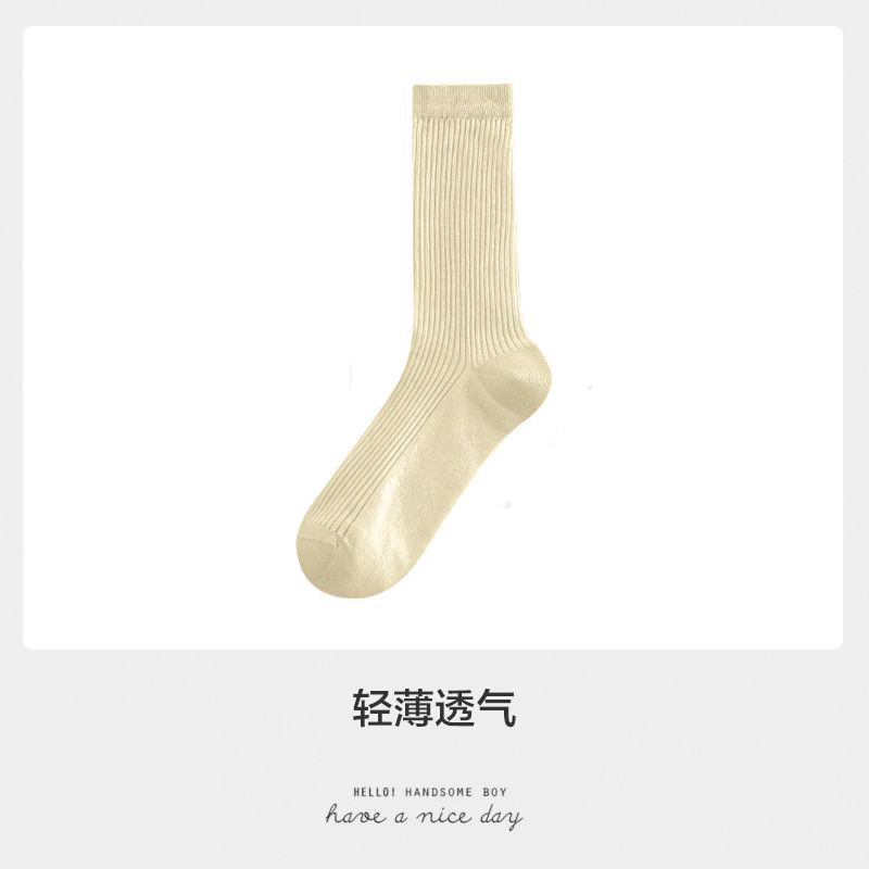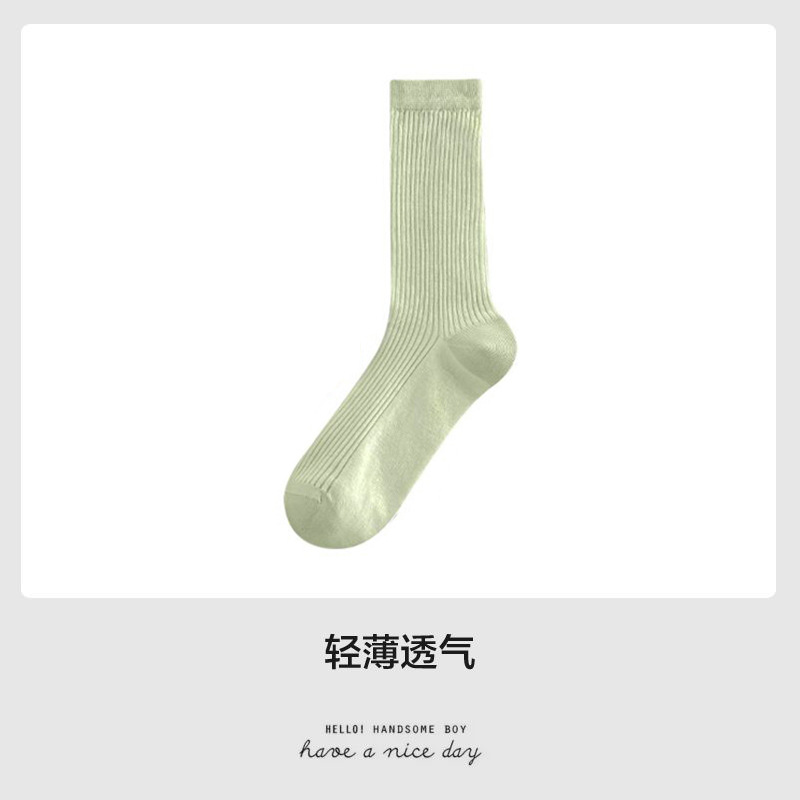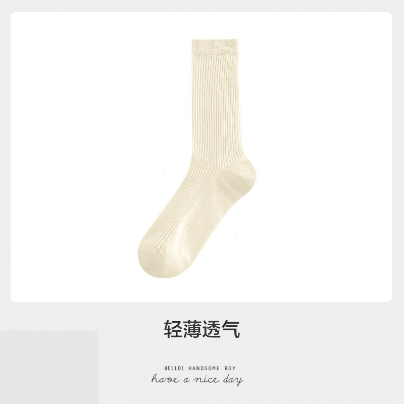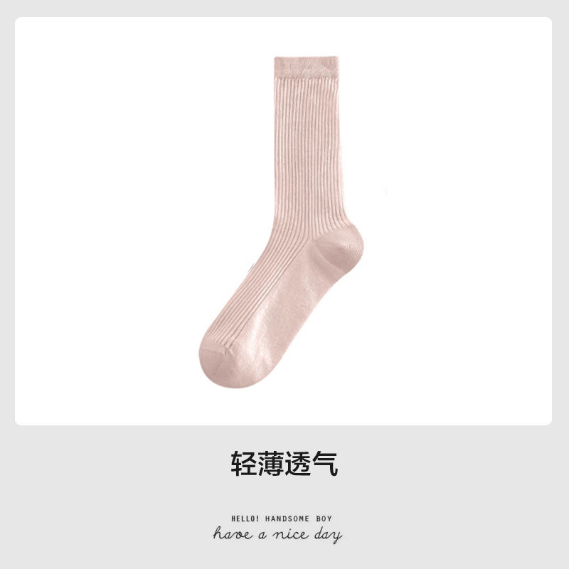 얇은 양말 여성 중반 종아리 봄 여름 학생 여성 양말 다목적 통기성 수직 패턴 달콤한 소녀 여름 여성 양말 더미 양말 Zhuji