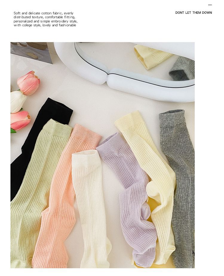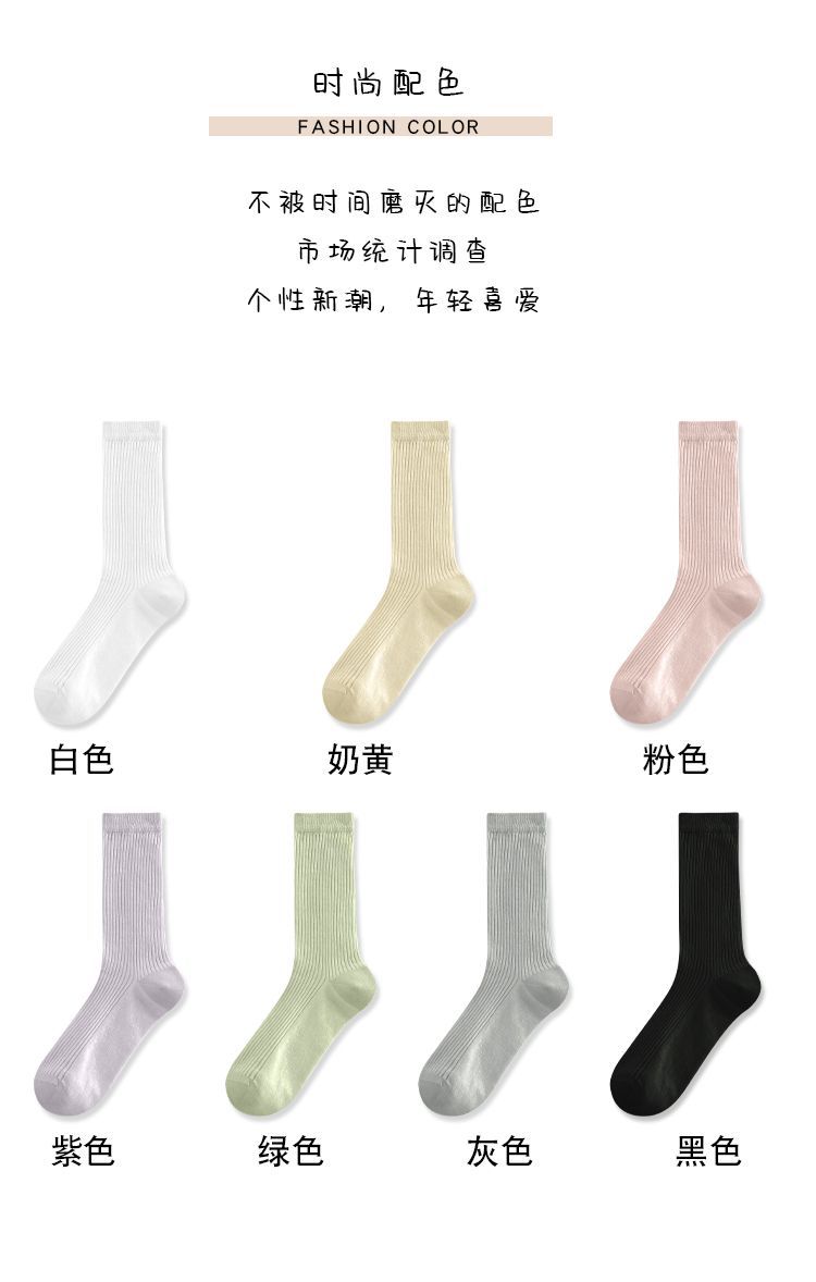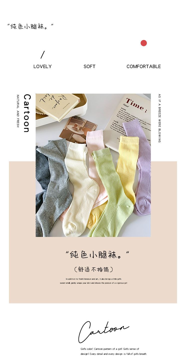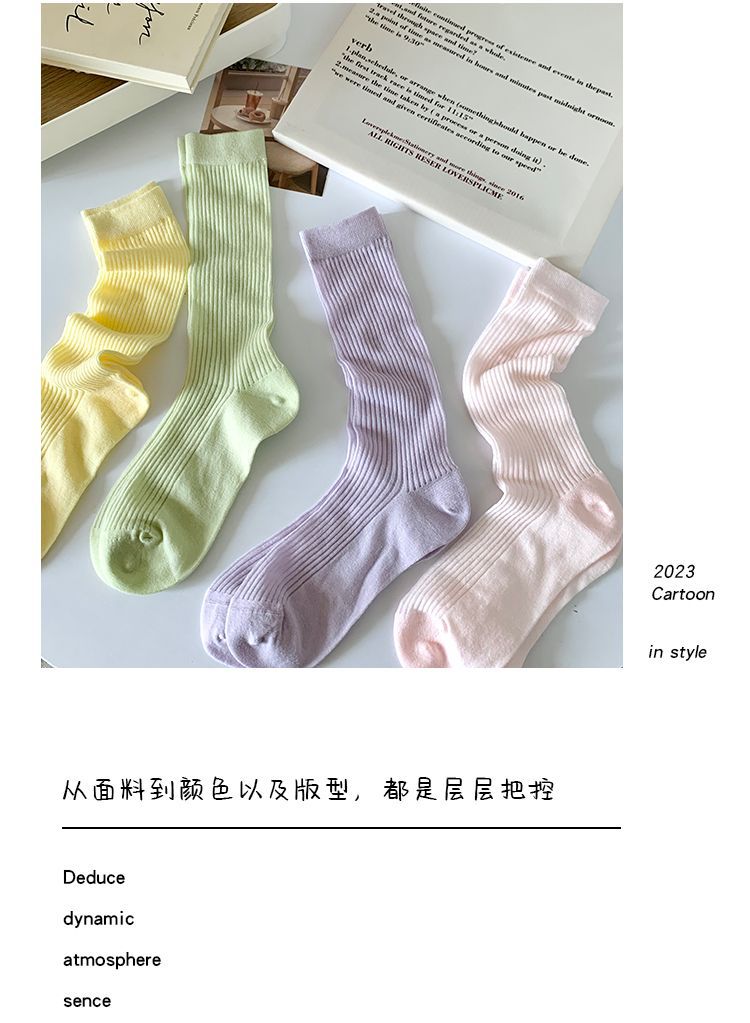 얇은 양말 여성 중반 종아리 봄 여름 학생 여성 양말 다목적 통기성 수직 패턴 달콤한 소녀 여름 여성 양말 더미 양말 Zhuji