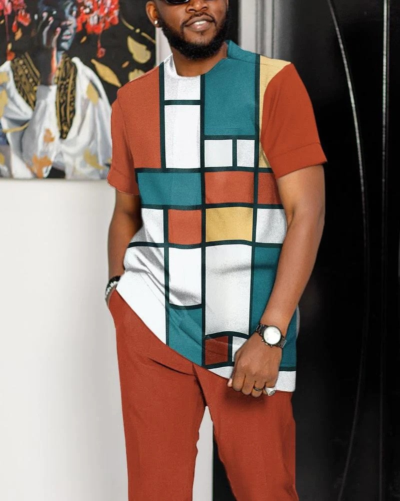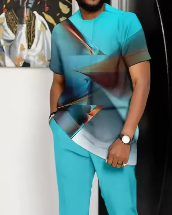 2024 새로운 투피스 남성 3D 프린팅 클래식 캐주얼 스포츠 세트 여름 바지 트렌디 한 얇은 세트