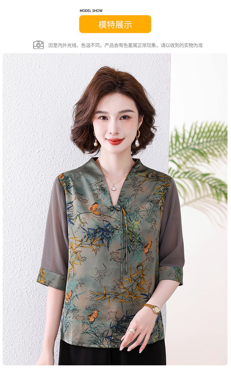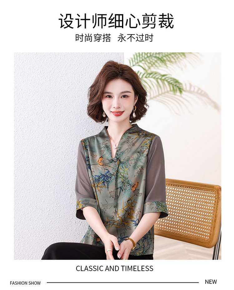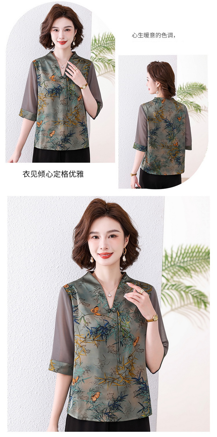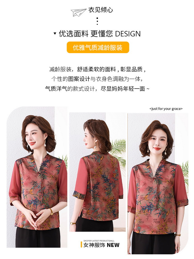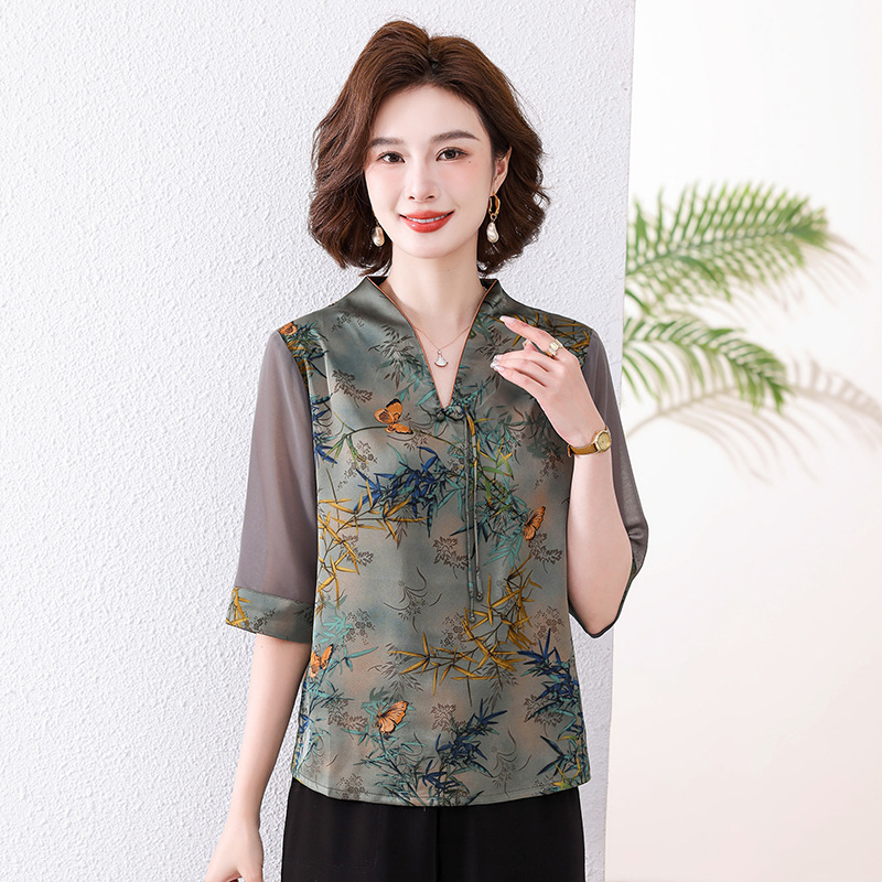 새로운 중국 스타일 엄마 여름 7부 소매 셔츠 2025 새로운 스타일 서양식 중년 및 노인 티셔츠 여성 연령 감소 슬리밍 탑스토어 가기