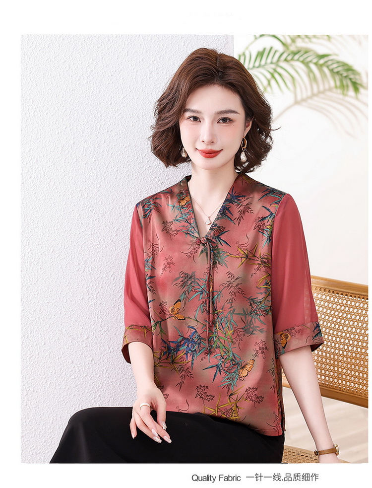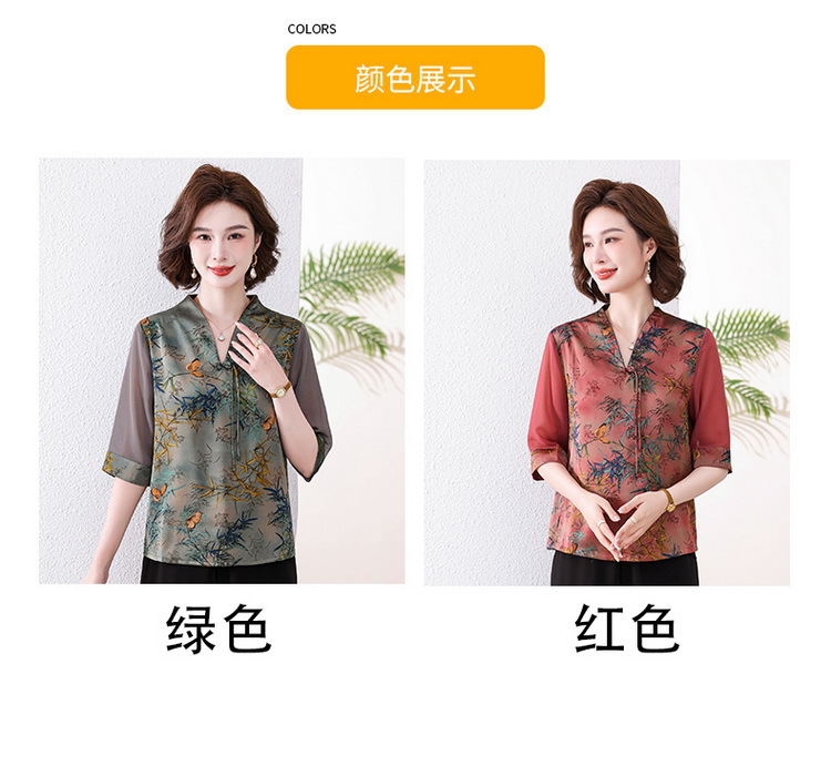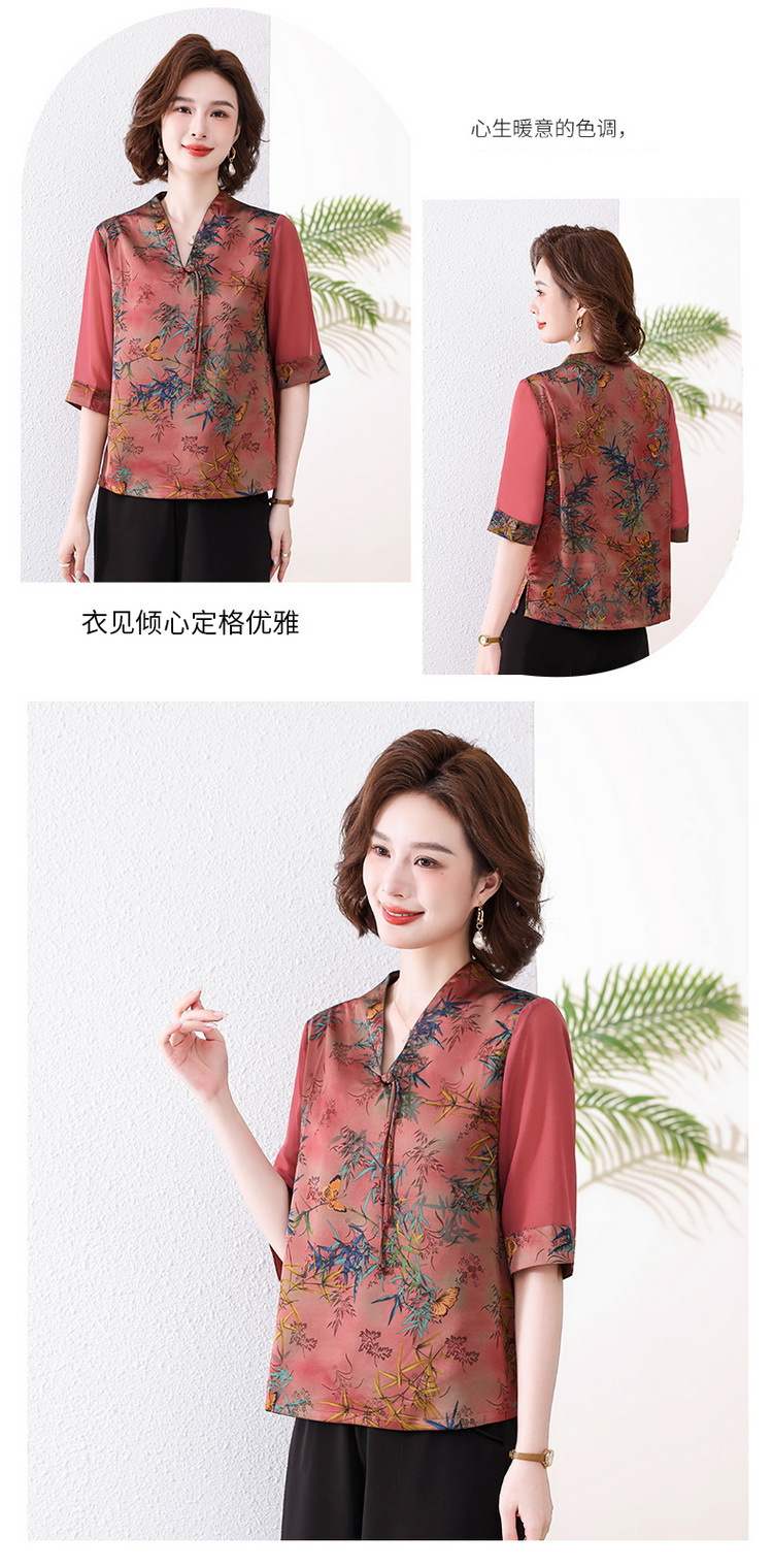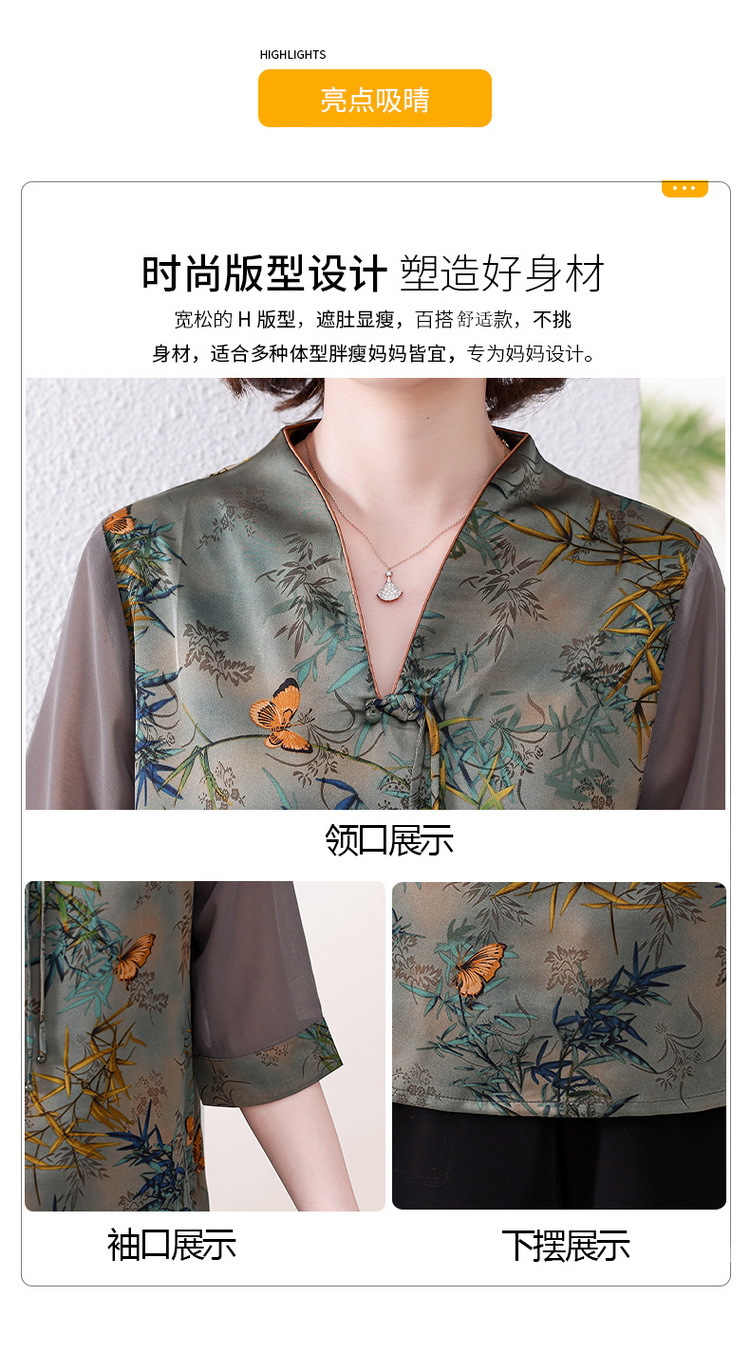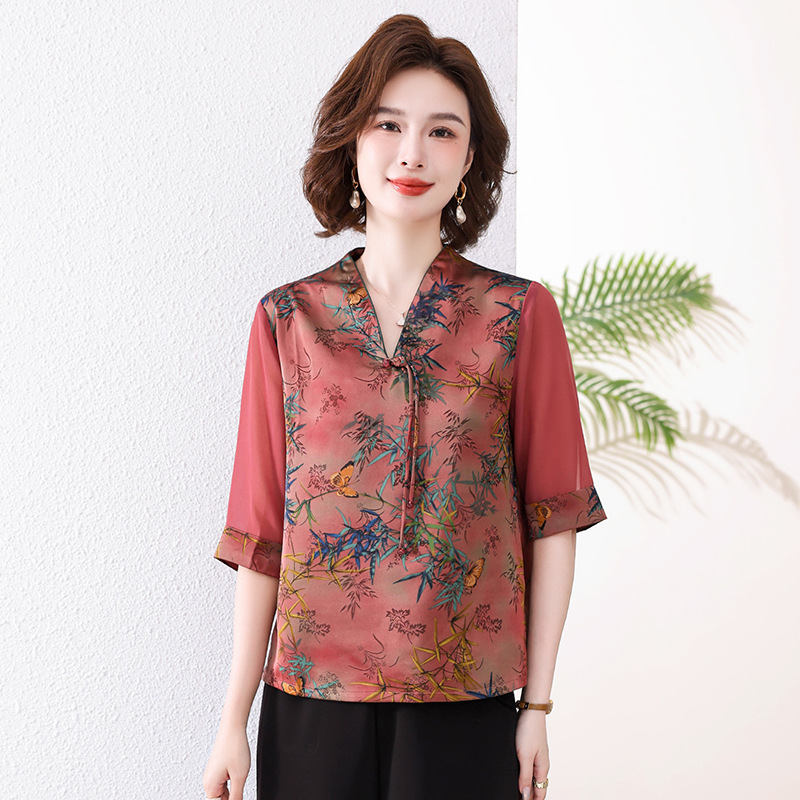 새로운 중국 스타일 엄마 여름 7부 소매 셔츠 2025 새로운 스타일 서양식 중년 및 노인 티셔츠 여성 연령 감소 슬리밍 탑스토어 가기