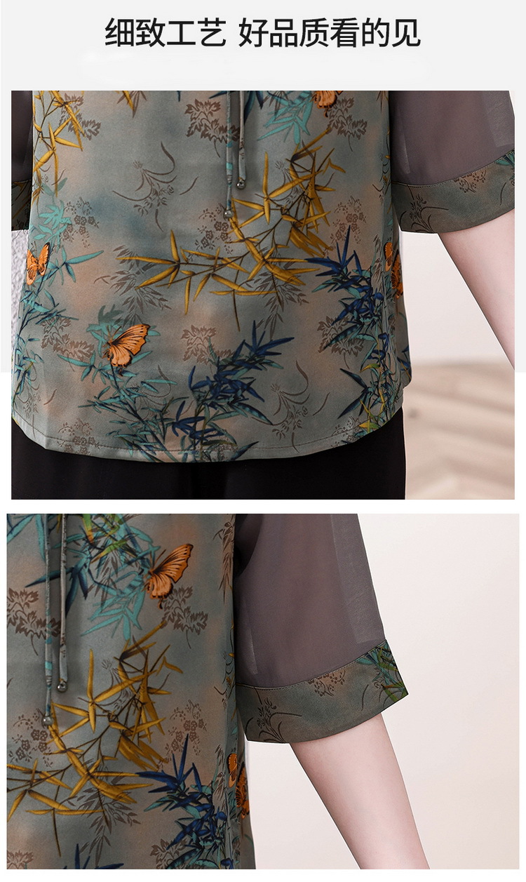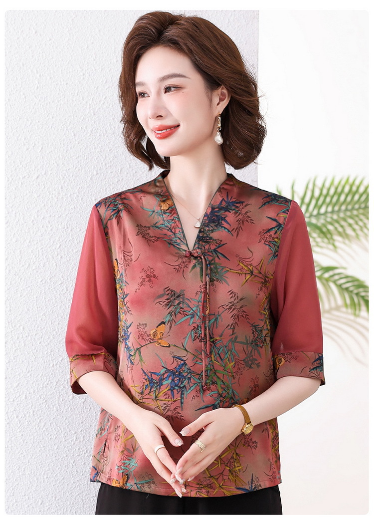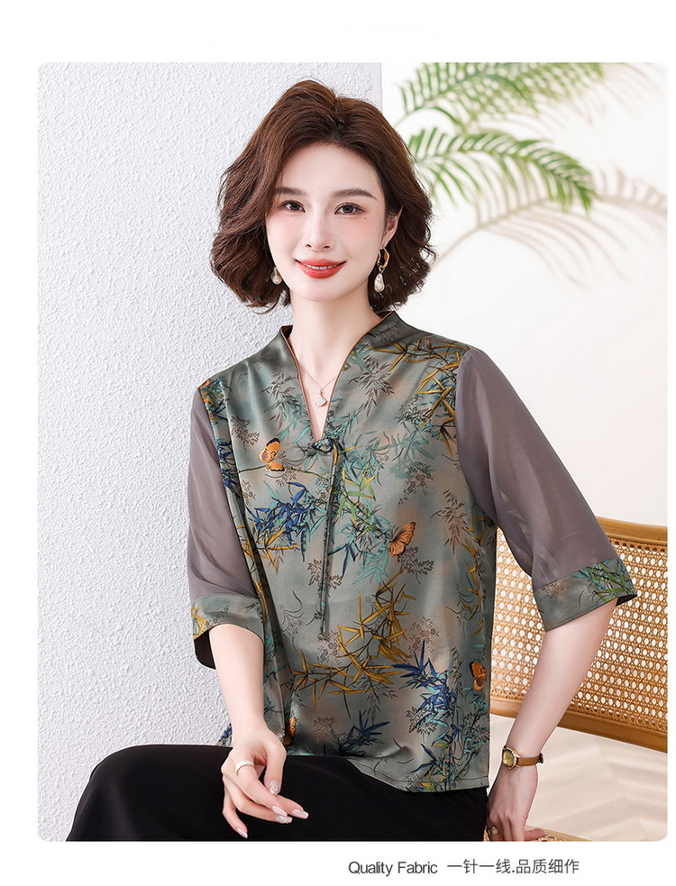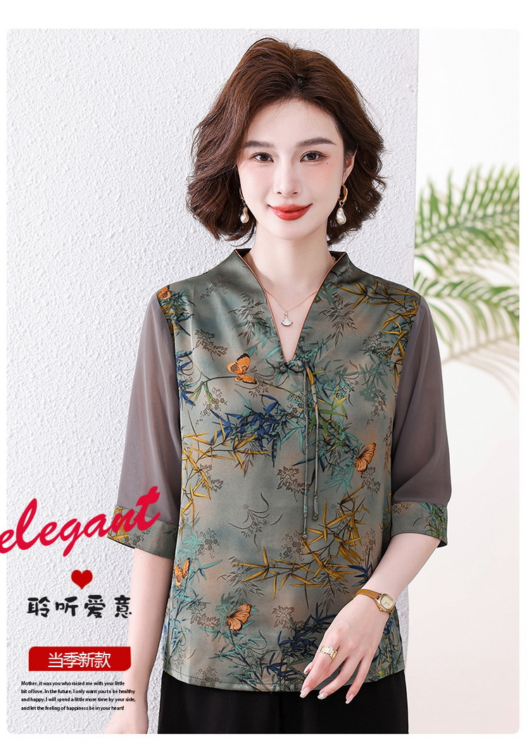 새로운 중국 스타일 엄마 여름 7부 소매 셔츠 2025 새로운 스타일 서양식 중년 및 노인 티셔츠 여성 연령 감소 슬리밍 탑
