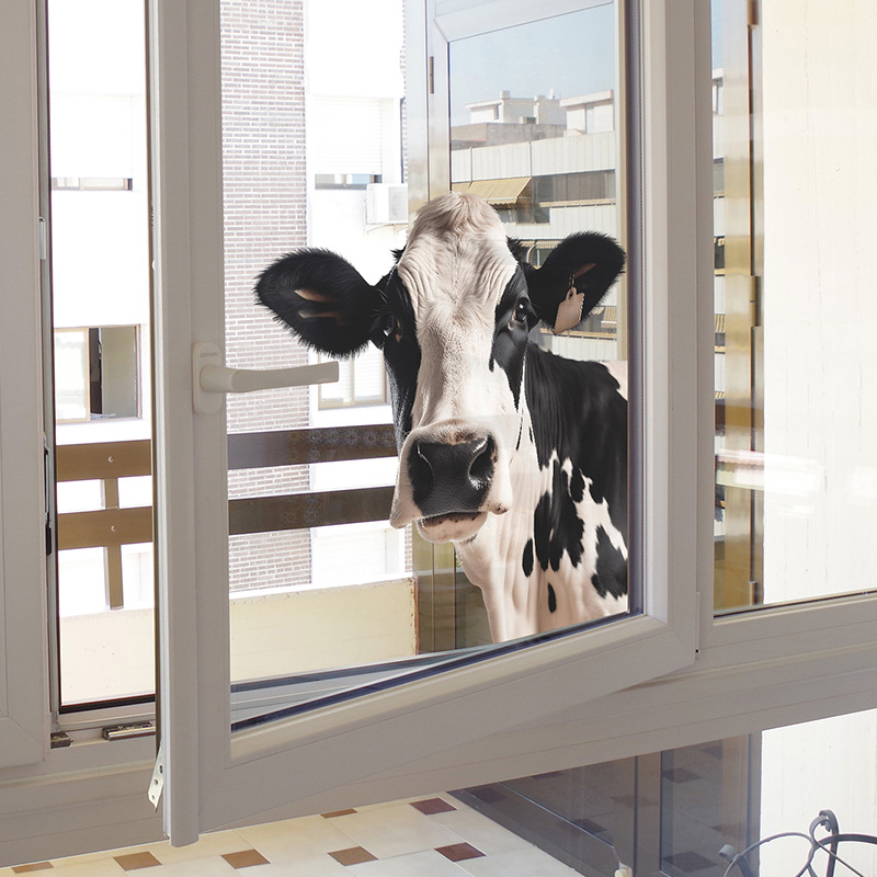반 고흐 FX-F509 만화 동물 소 유리 문 및 창 가정 미화 장식 창 스티커 도매 uv스토어 가기