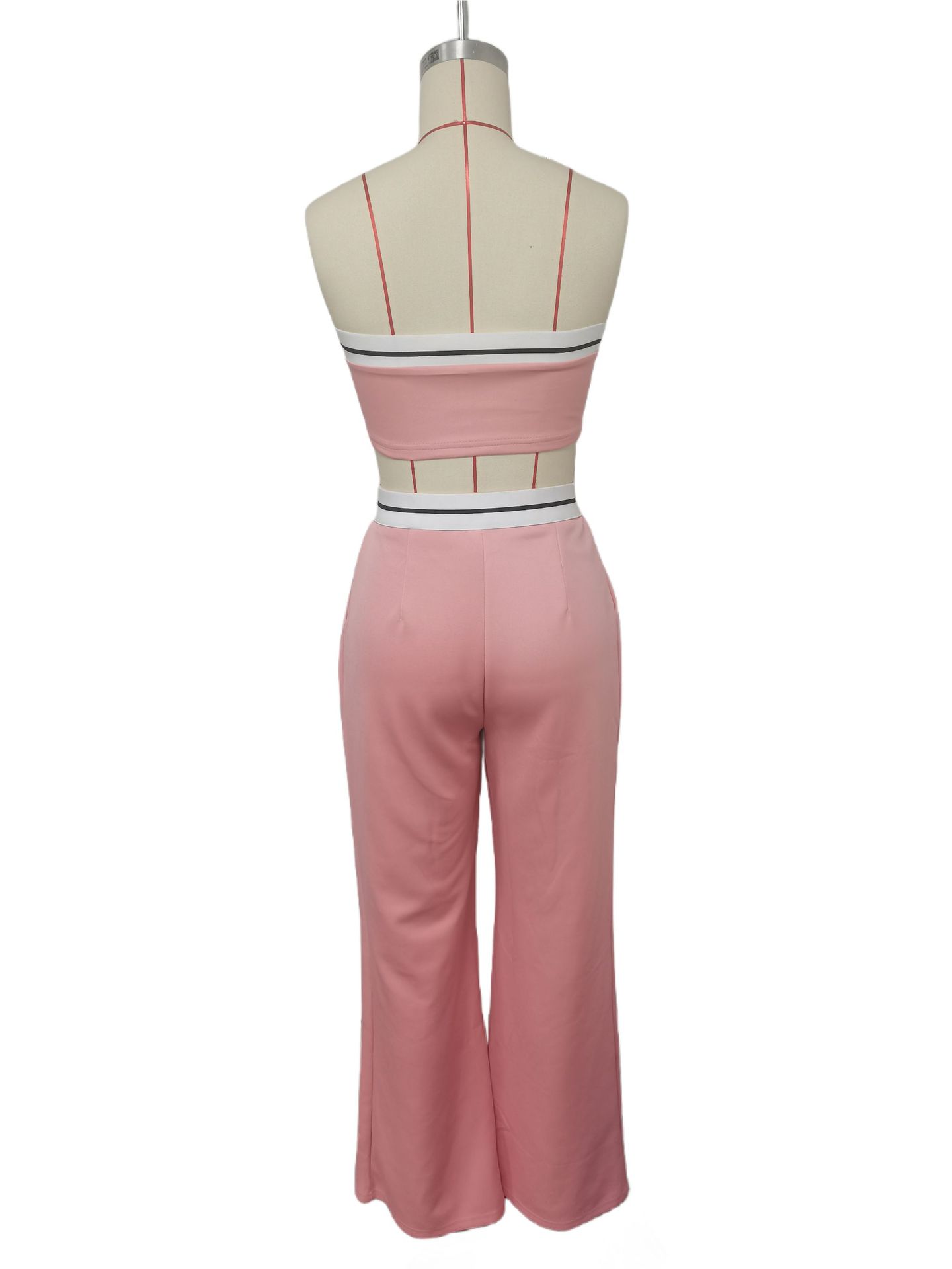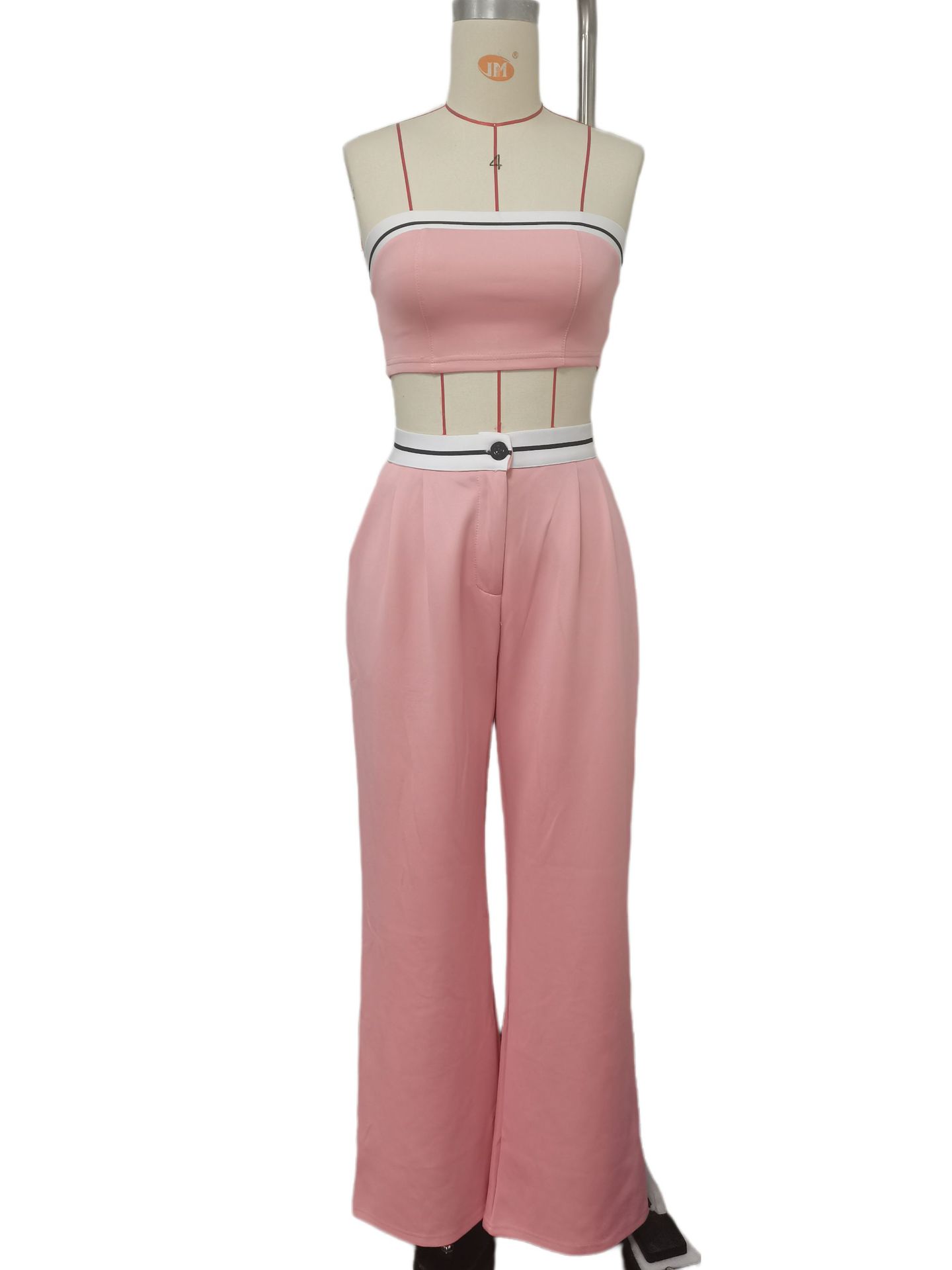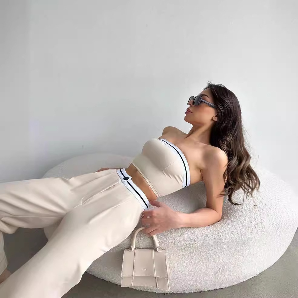 유럽과 미국의 대외 무역 여성 의류 새로운 뜨거운 여자 착용 스포츠 조끼 튜브 최고 대비 컬러 높은 허리 넓은 다리 바지 캐주얼 세트