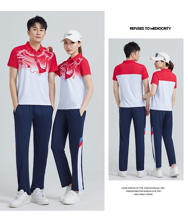 중국 팀 여름 스포츠 세트 남자 캐주얼 바지 반팔 스포츠 팀 옷 여학생 클래스 옷 투피스 세트