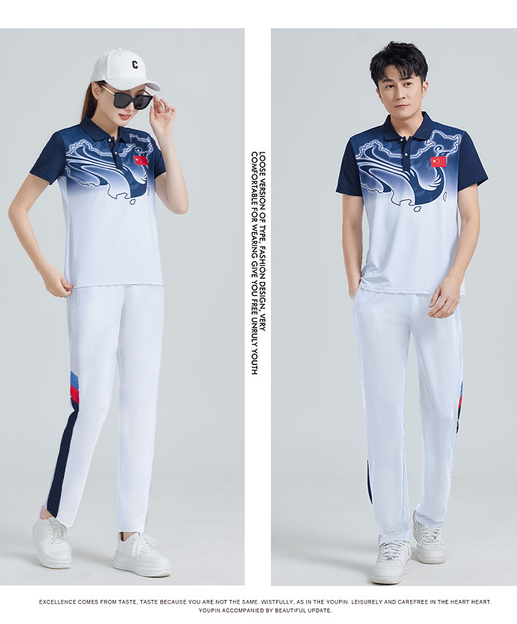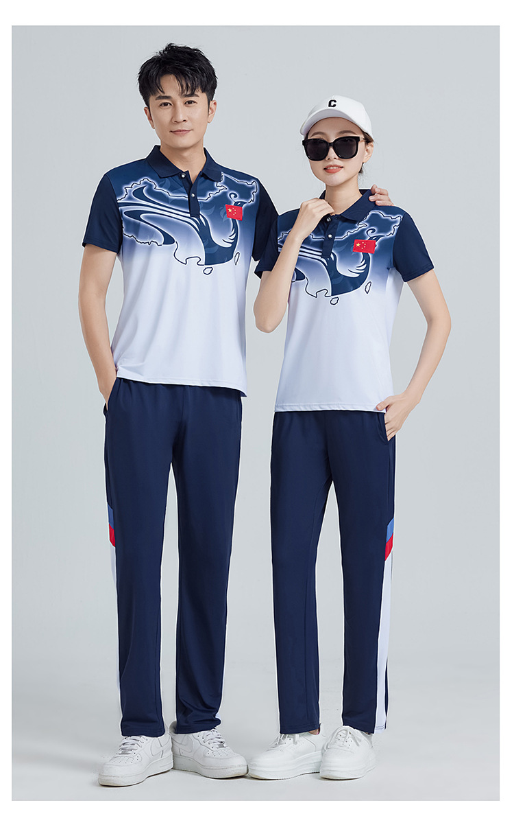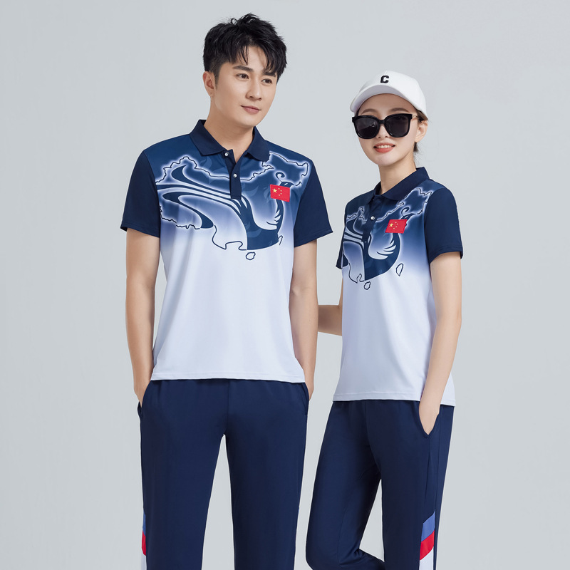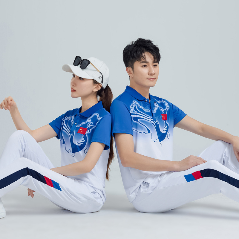 중국 팀 여름 스포츠 세트 남자 캐주얼 바지 반팔 스포츠 팀 옷 여학생 클래스 옷 투피스 세트스토어 가기