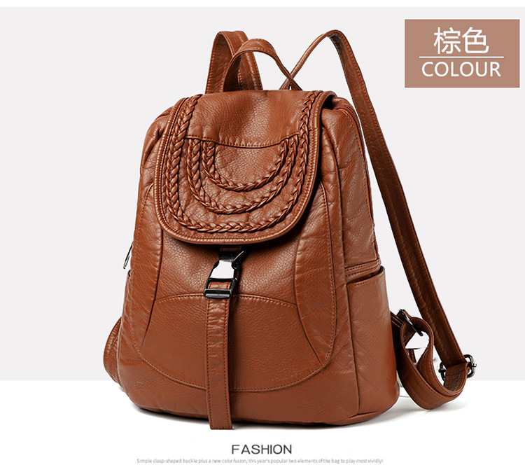 크로스보더 짠 배낭 2024 트렌디 한 한국어 버전 대용량 여행 가방 패션 캐주얼 부인 부드러운 가죽 배낭스토어 가기
