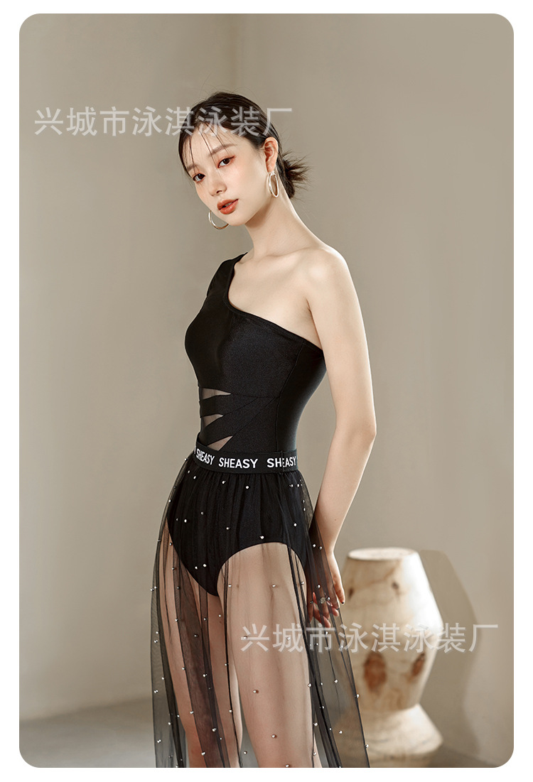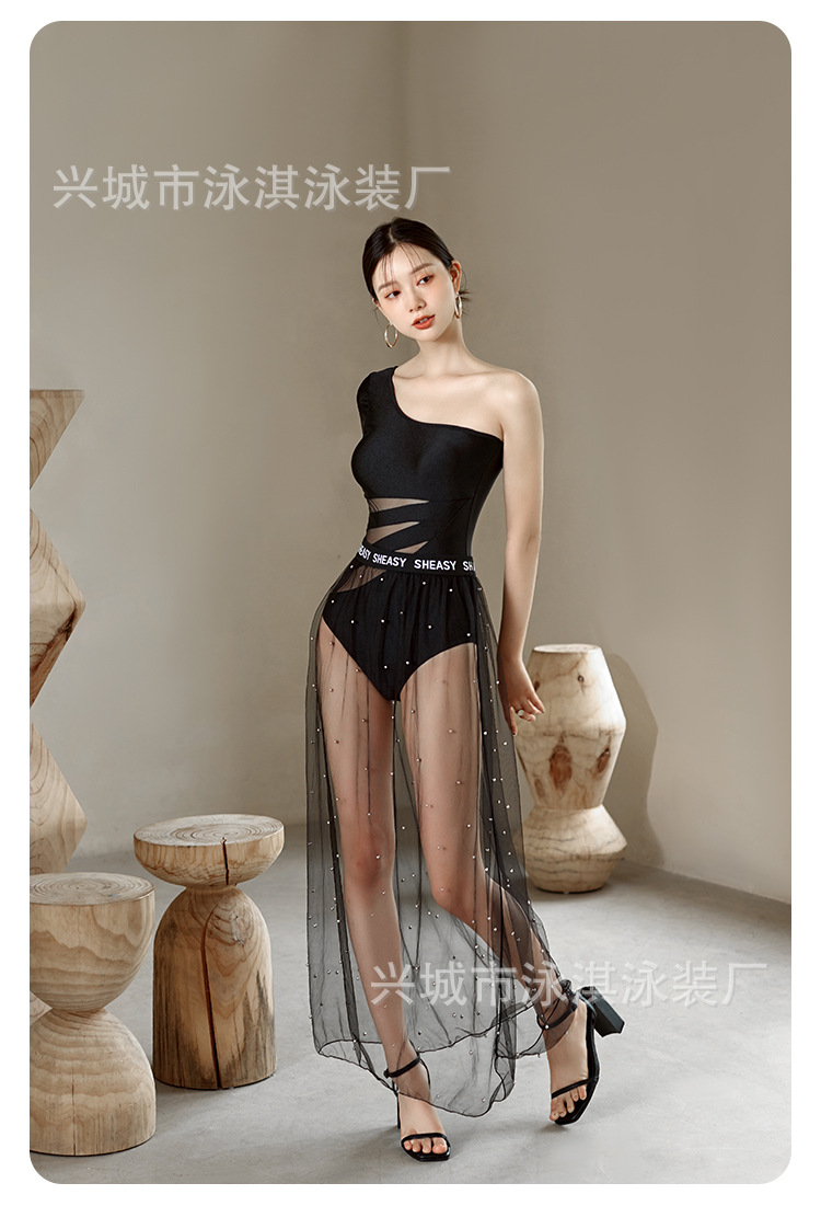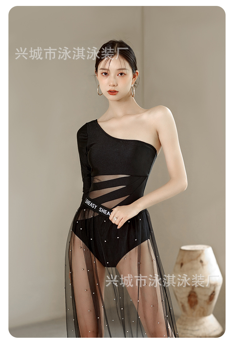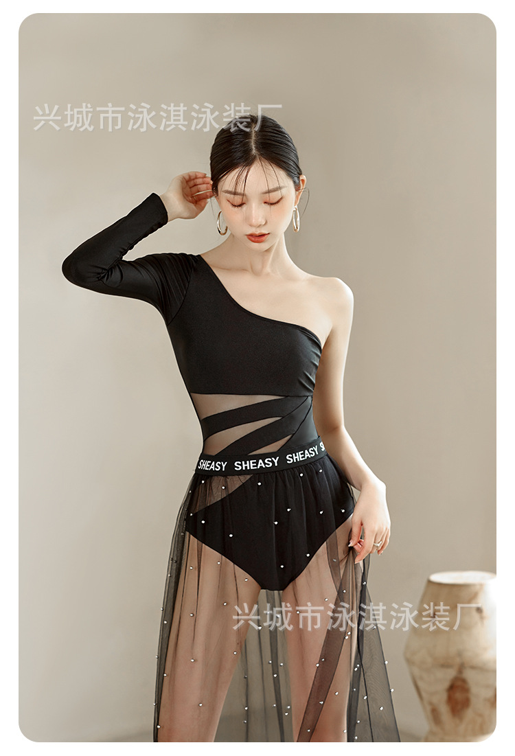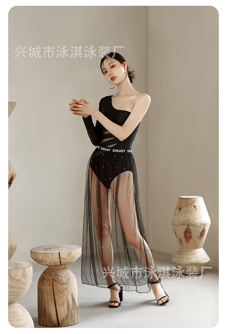 가벼운 고급 기질 여신 성격 싱글 긴팔 어깨 얇은 명주 원피스 슬리밍 원피스 수영복 여성용 투피스 수영복스토어 가기
