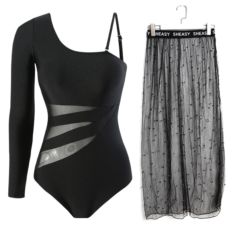 가벼운 고급 기질 여신 성격 싱글 긴팔 어깨 얇은 명주 원피스 슬리밍 원피스 수영복 여성용 투피스 수영복