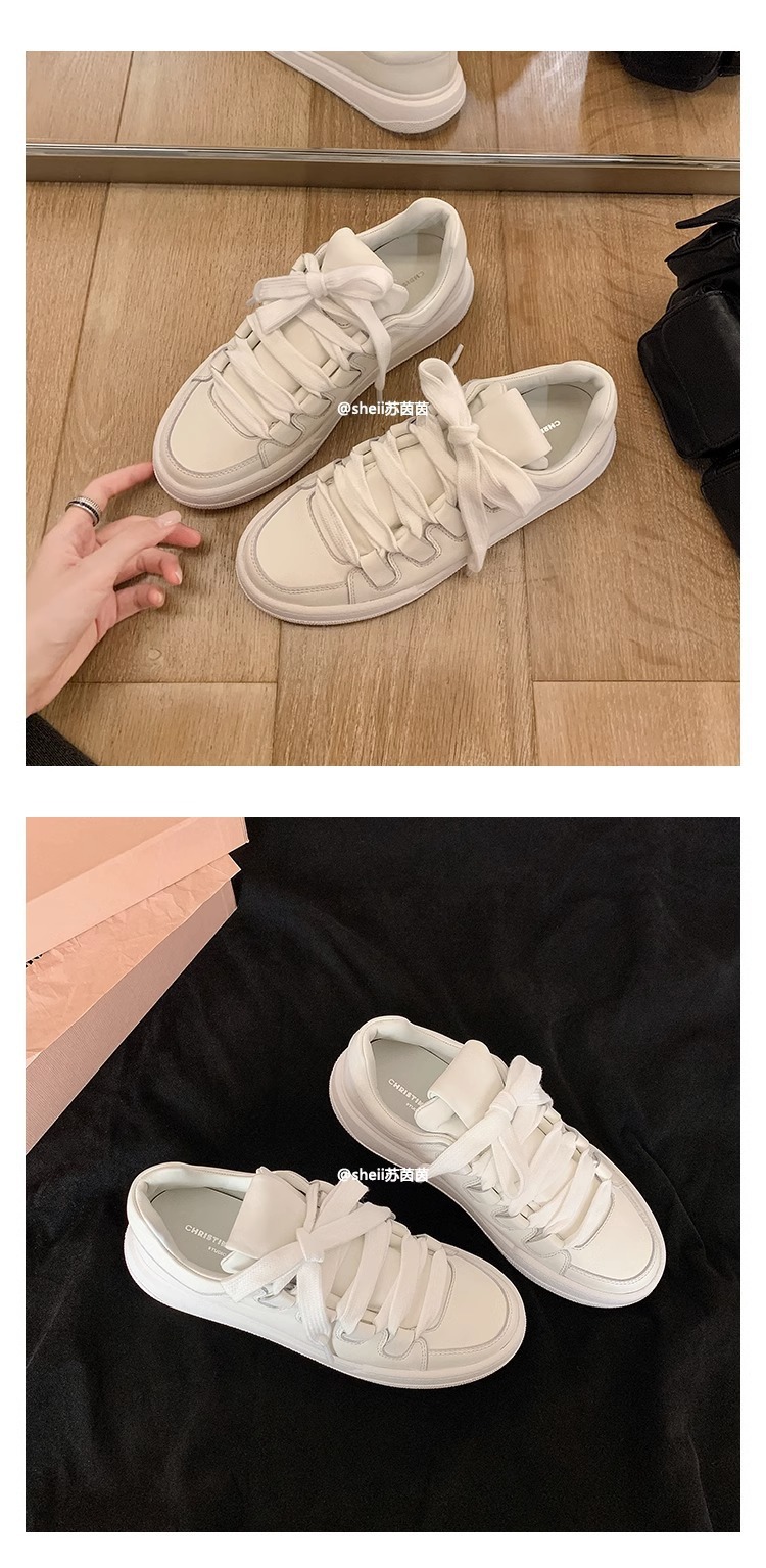 수인인과 같은 스타일~miu 신발 소가죽 키높이 다용도 스니커즈 여성 캐주얼 빵신발 두꺼운 밑창 흰색 신발스토어 가기