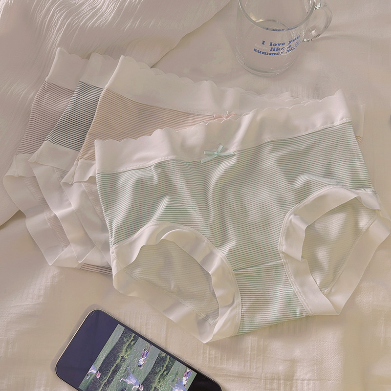 Meinai 소프트 코튼 스트라이프 속옷 여성의 통기성 코튼 가랑이 높은 허리 기본 인쇄 소녀 브리핑 무료 배송