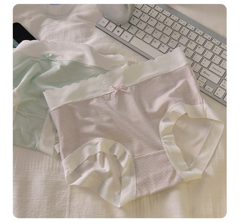 Meinai 소프트 코튼 스트라이프 속옷 여성의 통기성 코튼 가랑이 높은 허리 기본 인쇄 소녀 브리핑 무료 배송스토어 가기
