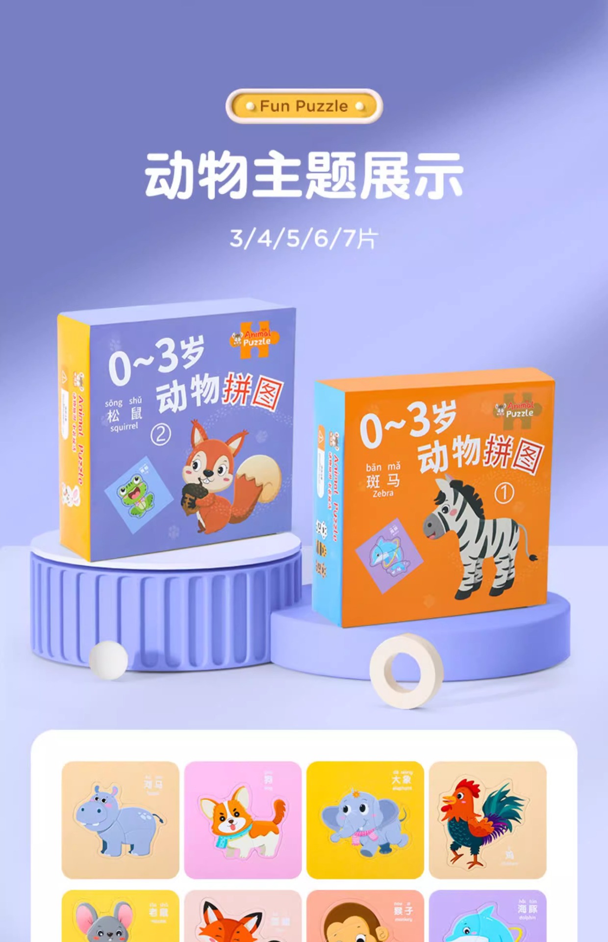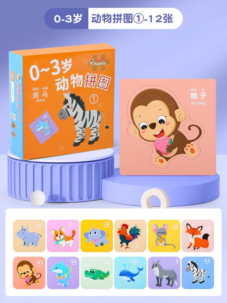 어린이 교육 매칭 퍼즐 0-3 ~ 6 세 어린이 동물 평면 그림 2 소년 4 여자 산바오 입장 장난감스토어 가기