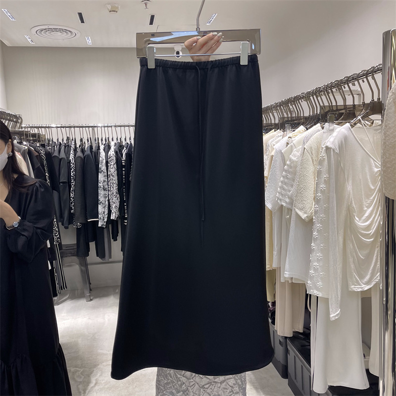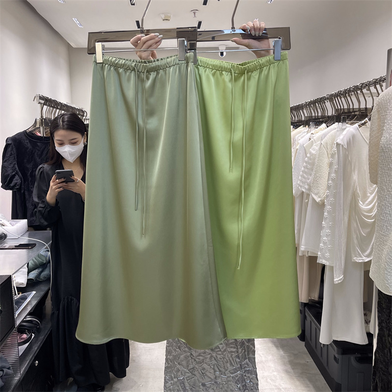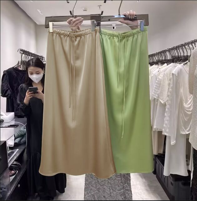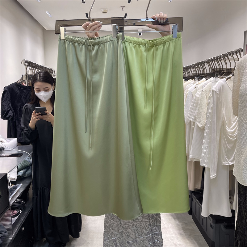 2025년 봄 여름 신상 여성용 13라인 새틴 실키 하이웨이스트 신축성 있는 드로스트링 드레이프 아세테이트 스커트스토어 가기