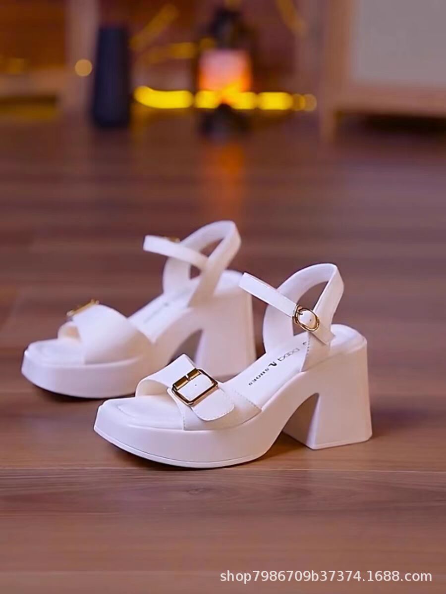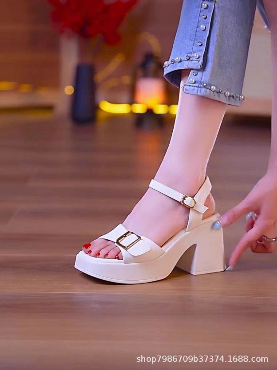 두꺼운 힐 로마 샌들 여성의 2024 새로운 여름 패션 캐주얼 여성 신발 방수 플랫폼 웨지 힐 베이지스토어 가기