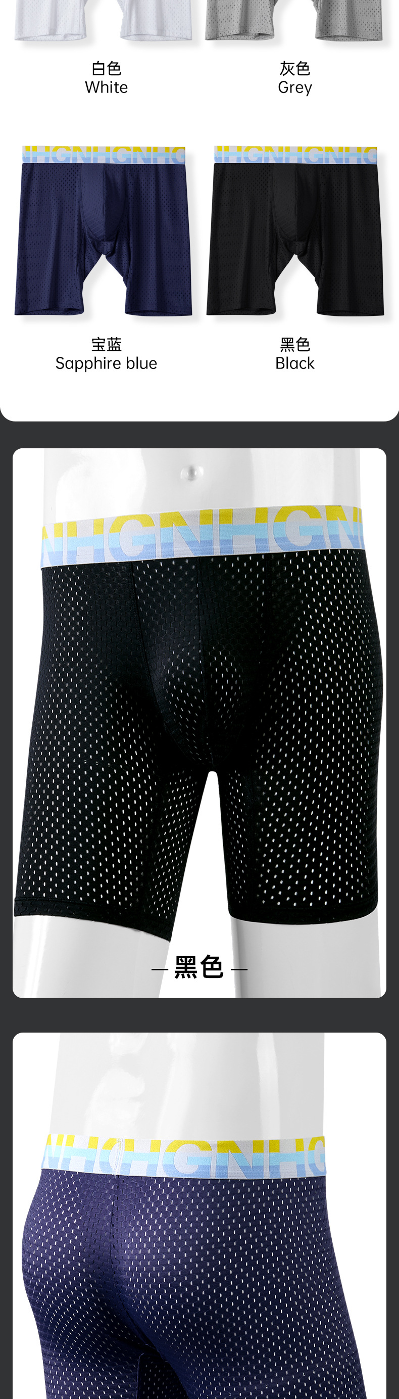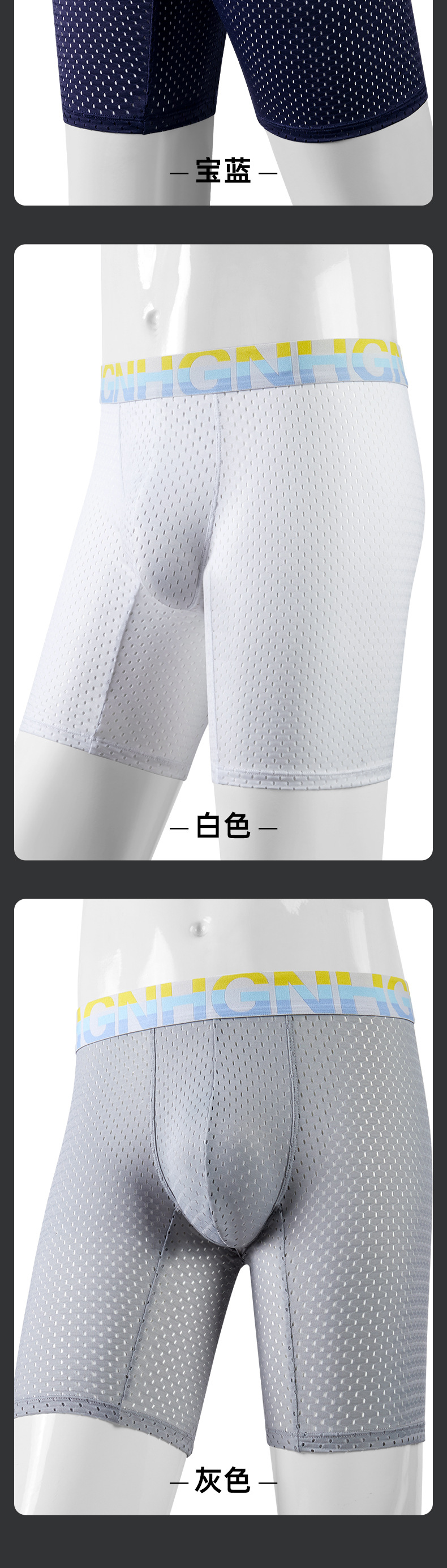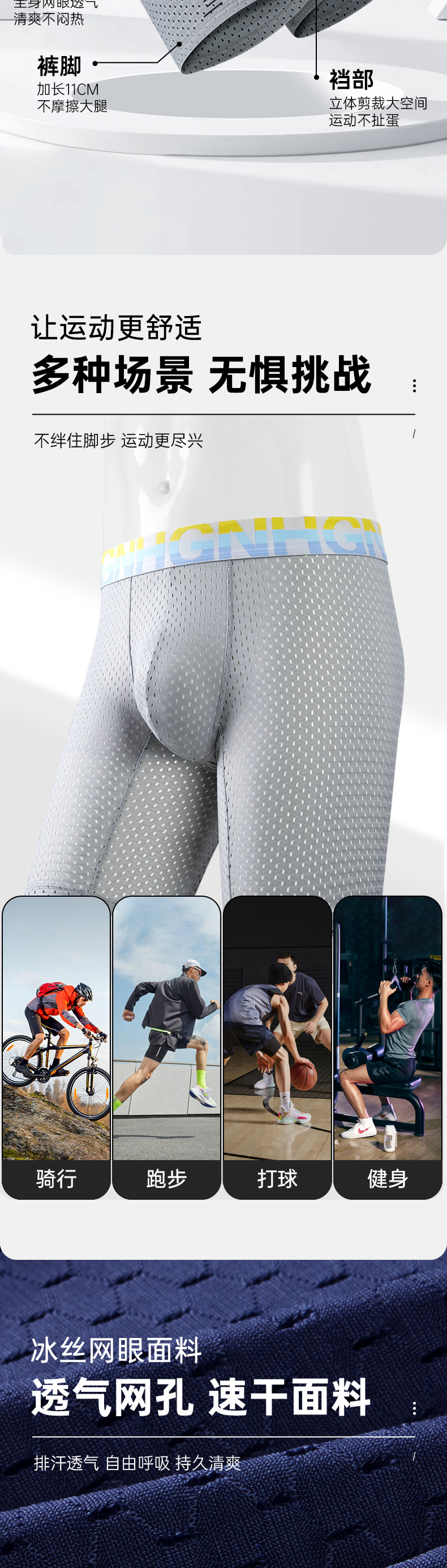 여름 아이스 실크 메쉬 스포츠 남성 속옷 내마모성 다리 달리기 빠른 건조 피트니스 연장 복서 반바지 자른 바지