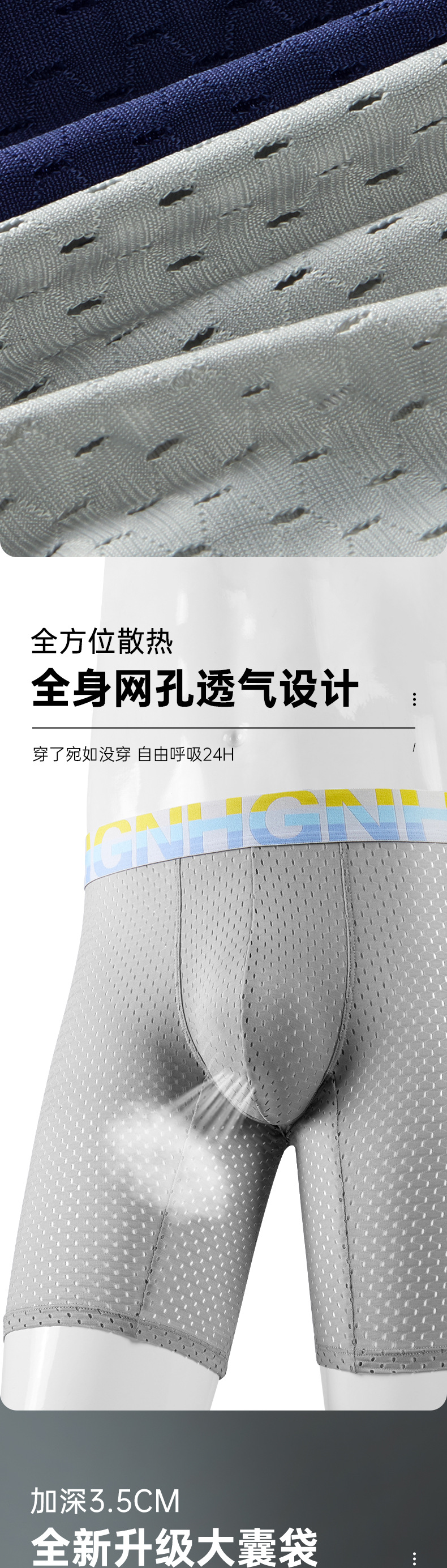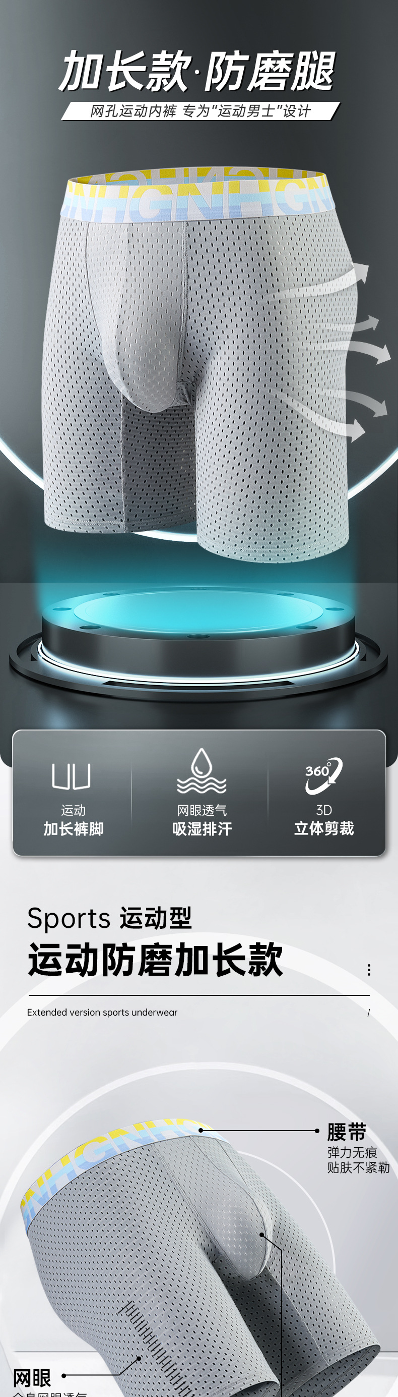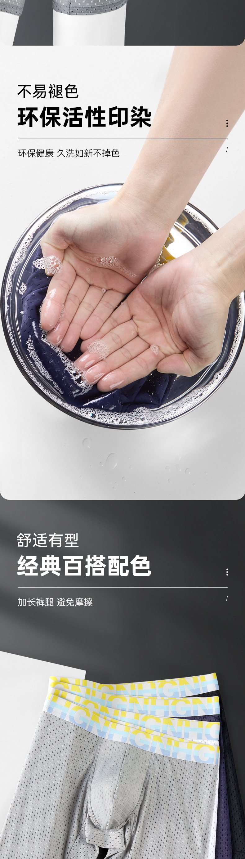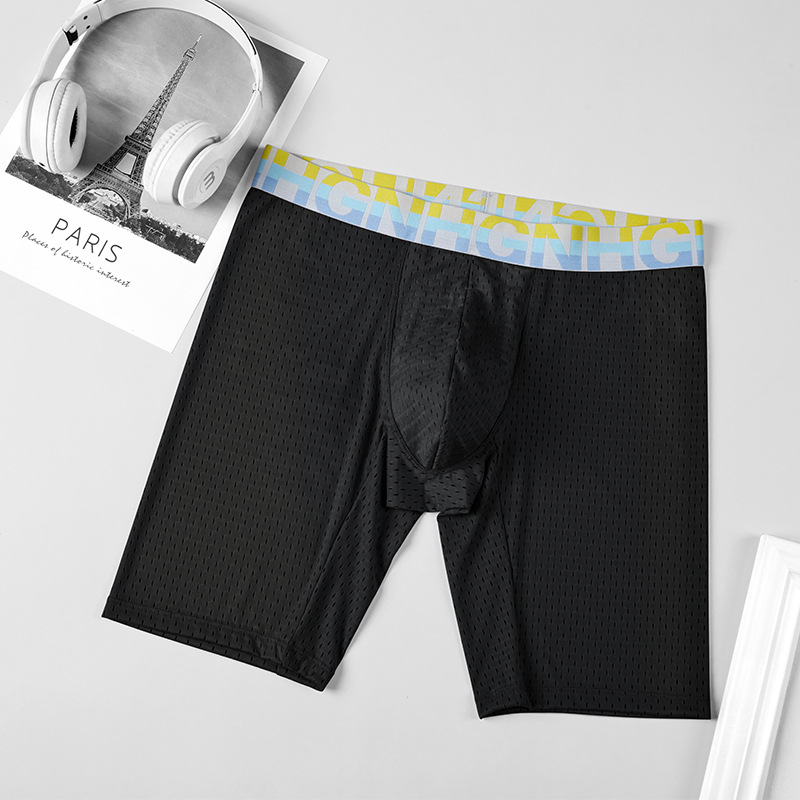 여름 아이스 실크 메쉬 스포츠 남성 속옷 내마모성 다리 달리기 빠른 건조 피트니스 연장 복서 반바지 자른 바지