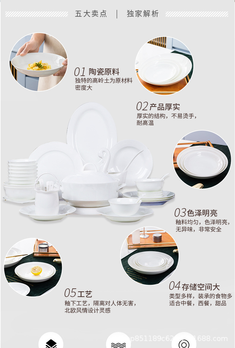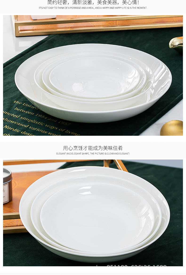Jingdezhen 뼈 중국 쌀 접시 순수한 흰색 깊은 접시 가정용 생선 머리 접시 식기 그릇 및 요리 호텔 테이블 뜨거운 요리