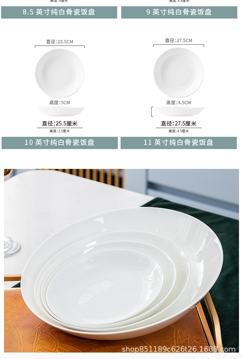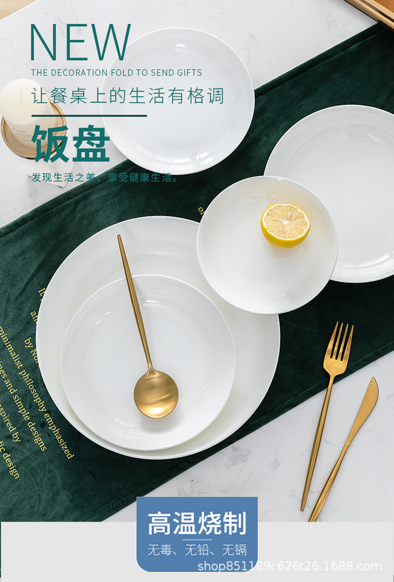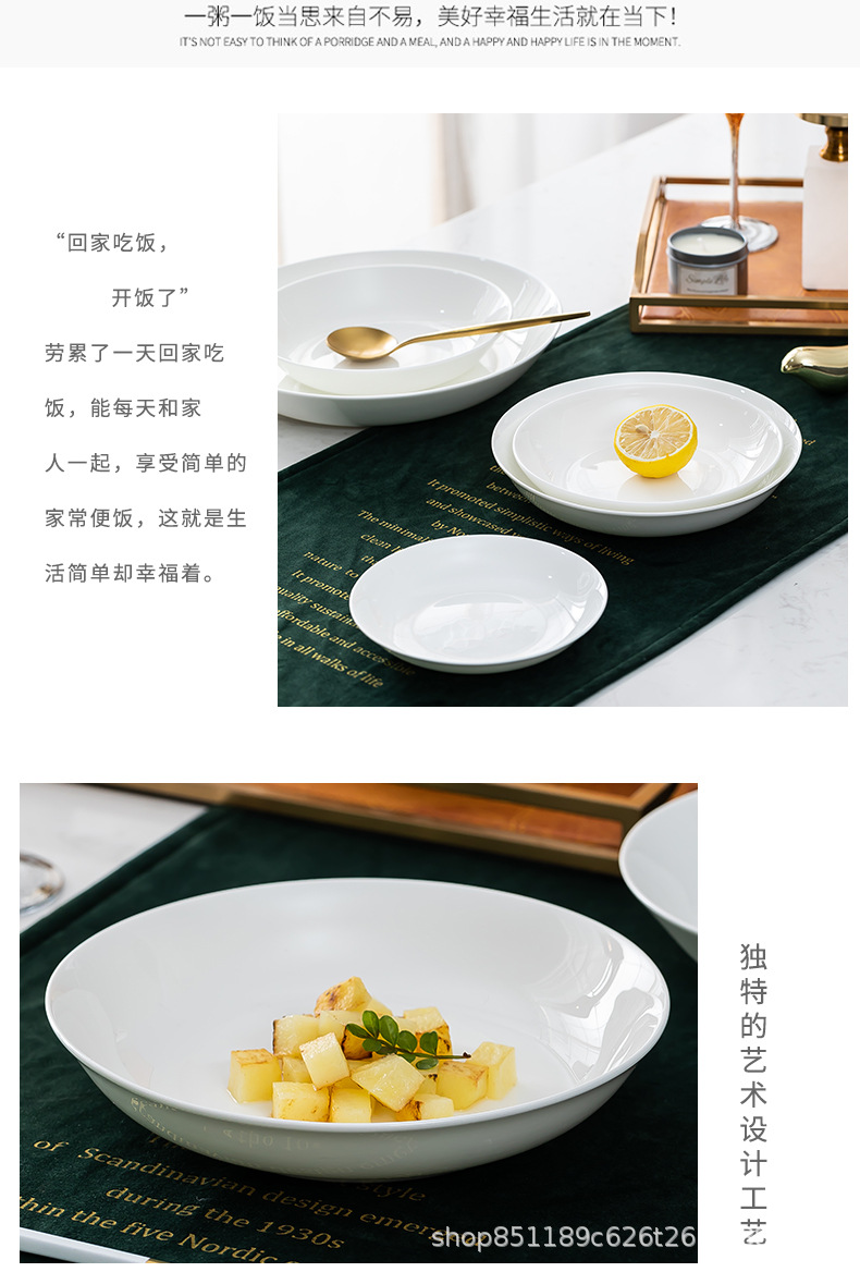 Jingdezhen 뼈 중국 쌀 접시 순수한 흰색 깊은 접시 가정용 생선 머리 접시 식기 그릇 및 요리 호텔 테이블 뜨거운 요리스토어 가기