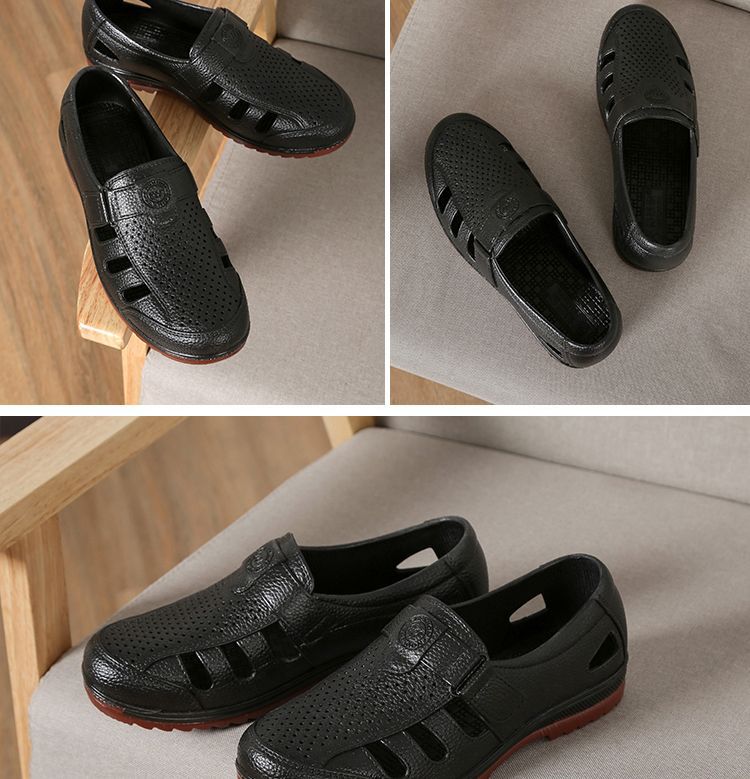 여름 신발 남자의 통기성 구멍 신발 할로우 비치 신발 캐주얼 부드러운 바닥 아빠 신발 힘줄 바닥 닫힌 발가락 샌들 남성