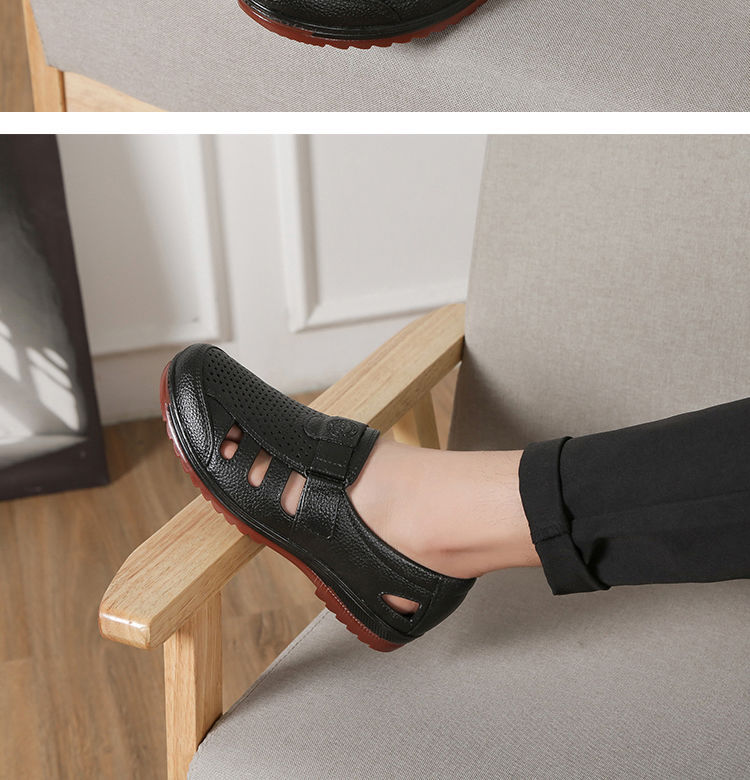 여름 신발 남자의 통기성 구멍 신발 할로우 비치 신발 캐주얼 부드러운 바닥 아빠 신발 힘줄 바닥 닫힌 발가락 샌들 남성스토어 가기