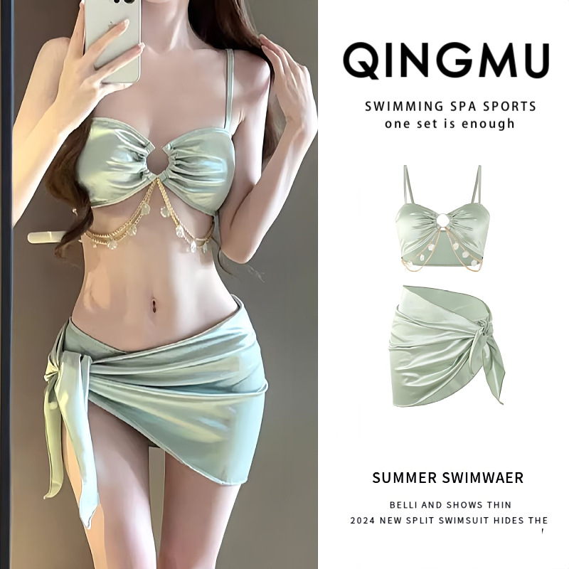 수영복 여성 여름 3 피스 세트 섹시한 2025 새로운 스타일 푸시 업 슬리밍 휴가 하이 엔드 사진 촬영 멋진 비키니