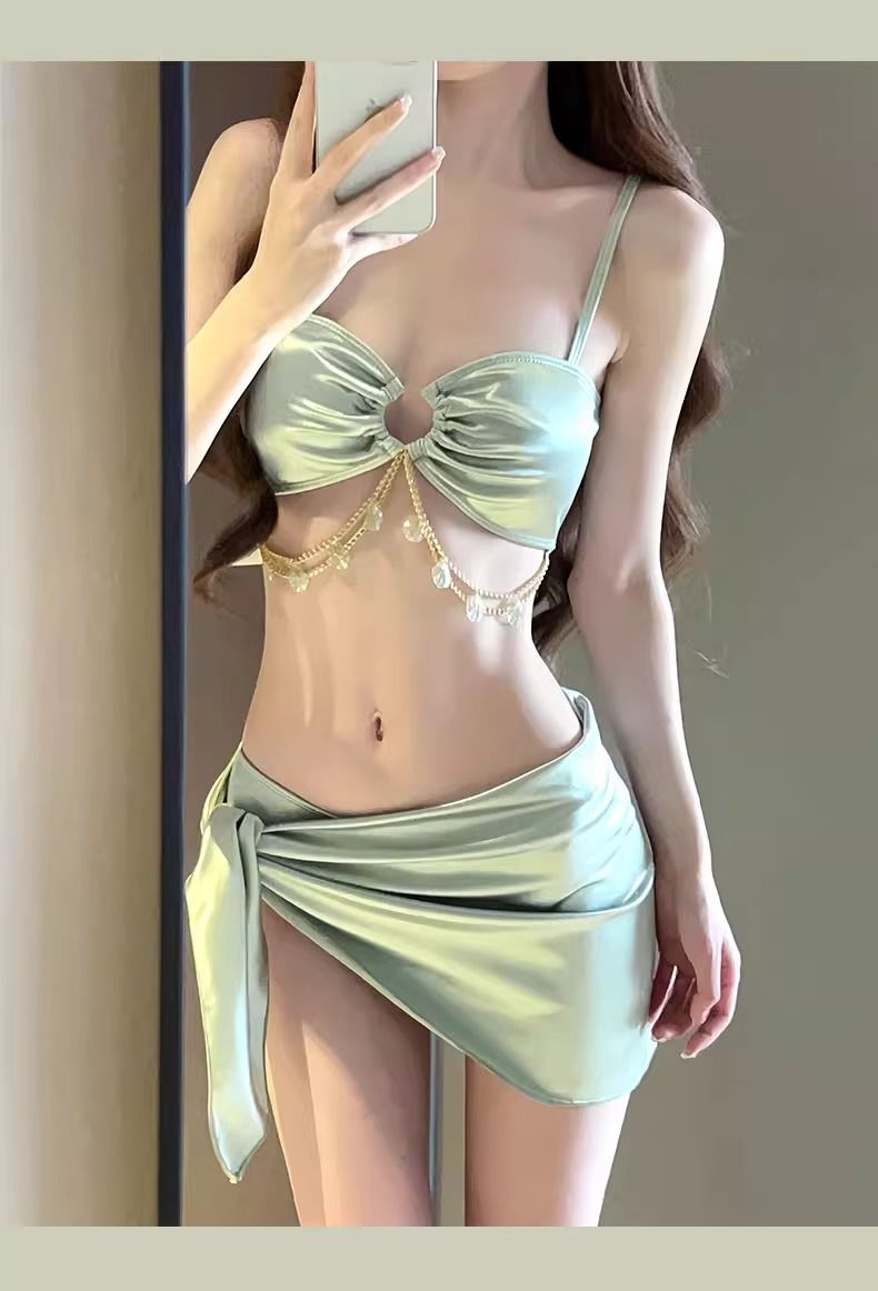 수영복 여성 여름 3 피스 세트 섹시한 2025 새로운 스타일 푸시 업 슬리밍 휴가 하이 엔드 사진 촬영 멋진 비키니스토어 가기