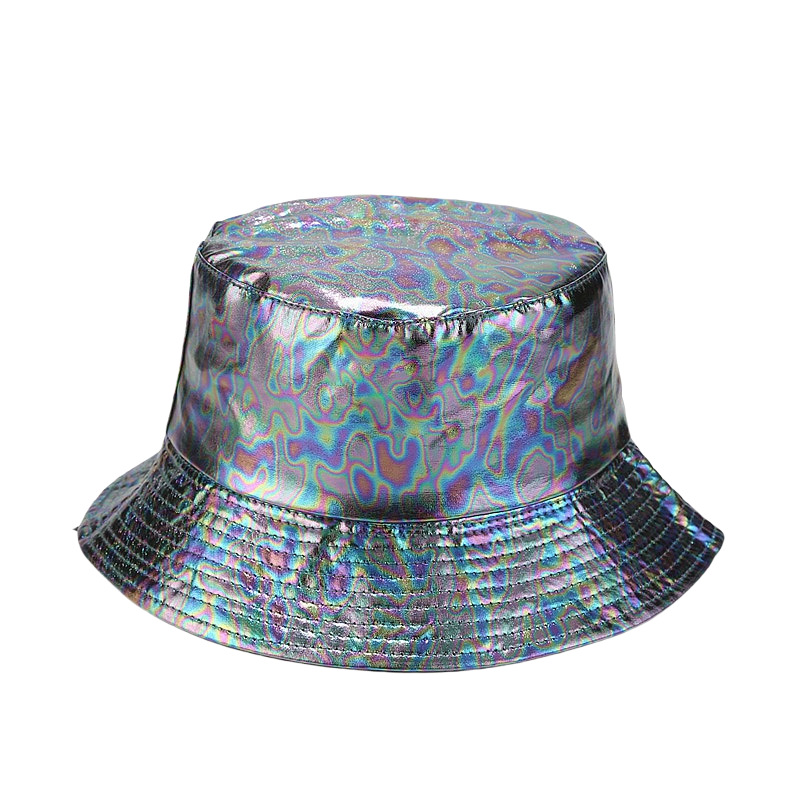 PU 어부 모자 국경 간 여행 반사 분지 모자 야외 레저 접이식 모자 가죽 광택 다채로운 등산 모자