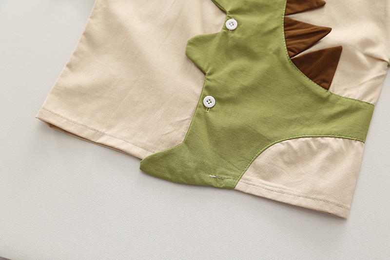 2024 새로운 여름 소년 3 차원 공룡 셔츠 반팔 캐주얼 코튼 반바지 투피스 세트 공장 도매