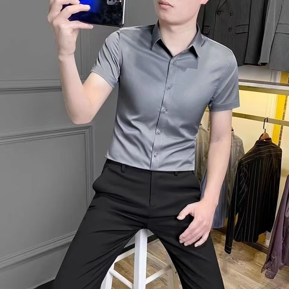 남성 셔츠 긴 소매 여름 슬림 핏 스트레치 비즈니스 2023 새로운 남성 세트 셔츠 남성 봄과 가을 셔츠스토어 가기