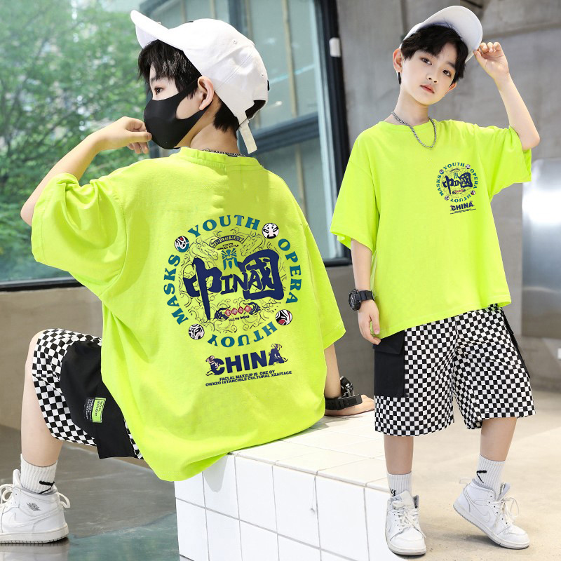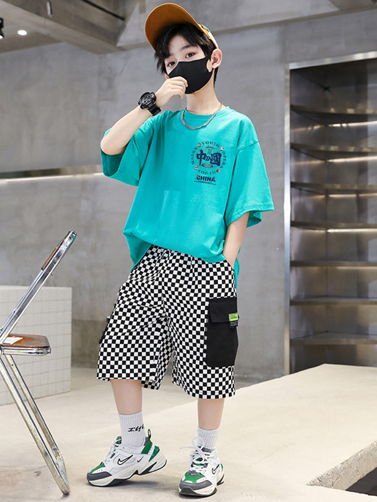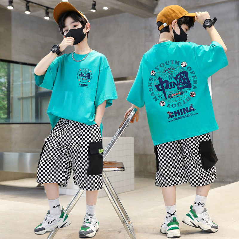 소년 여름 세트 어린이 여름 반바지 반팔 티셔츠는 새로운 중형 및 대형 어린이 스포츠 및 레저 투피스 세트 2024스토어 가기