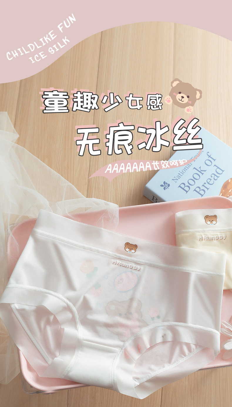 여자 속옷 학생 항균 아이스 실크 어린이 브리프 통기성 원활한 중반 허리 여름 얇은 속옷 새로운스토어 가기