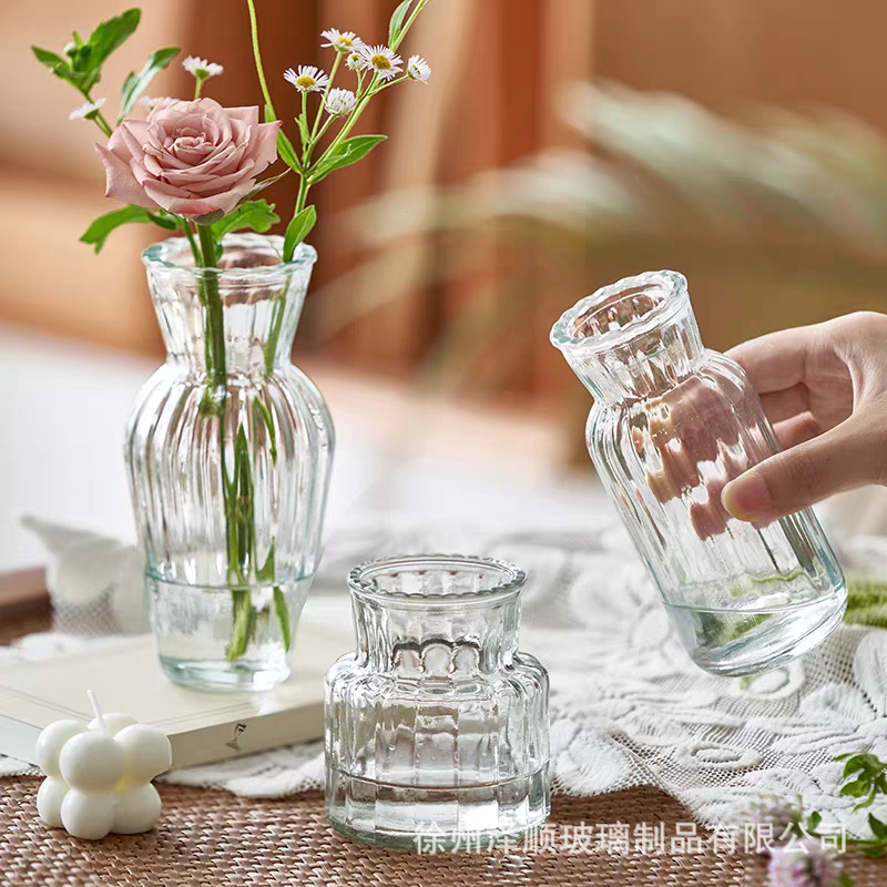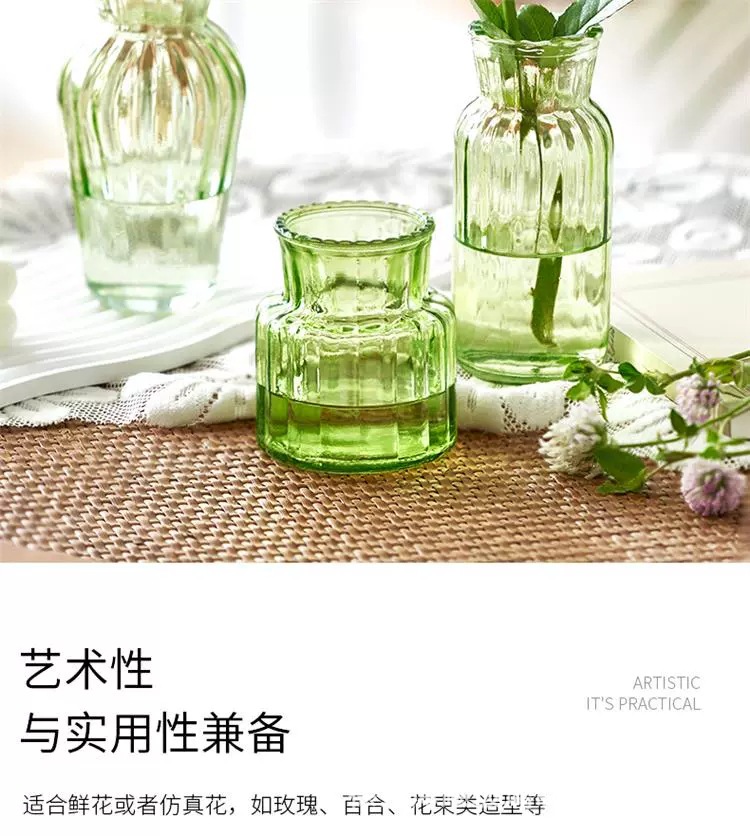 새로운 창조적 인 레이스 3 피스 세트 스타일 미니 유리 꽃병 수경 녹색 식물 장식 바탕 화면 투명 색상스토어 가기